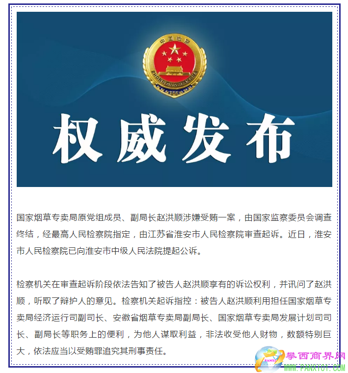 國家煙草專賣局原副局長趙洪順涉嫌受賄被依法決定逮捕