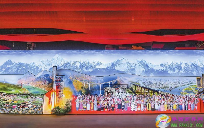 匯集了雅西高速、貢嘎雪山等四川名片,合成的巨幅照片墻,引人注目。