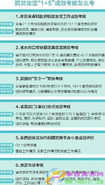 如何考?省扶貧開發(fā)局相關(guān)負(fù)責(zé)人介紹,具體而言,就是將黨委和政府脫貧攻堅工作成效考核、省直部門(單位)定點扶貧考核、扶貧專項考核、省內(nèi)對口幫扶藏區(qū)彝區(qū)貧困縣考核、貧困村“五個一”幫扶考核、東西部扶貧協(xié)作和藏區(qū)攜手奔小康成效評價統(tǒng)一整合為脫貧攻堅成效考核,一支隊伍完成所有考核。
