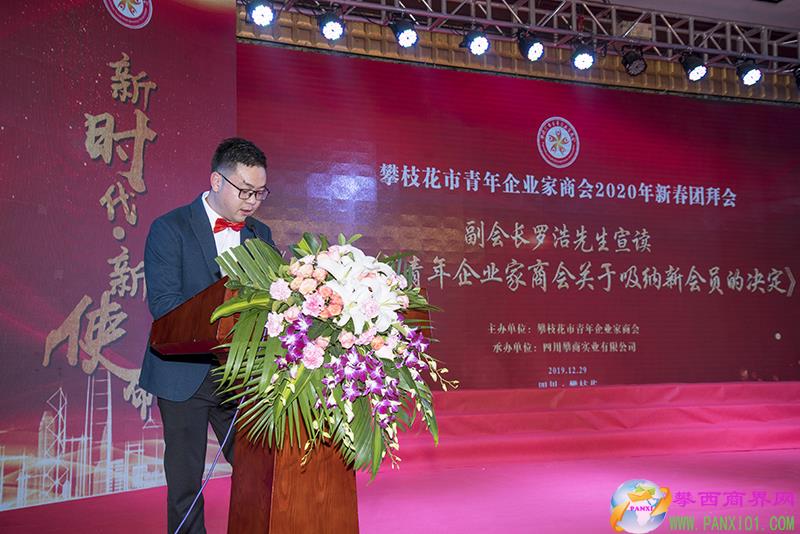 副會長羅浩宣讀《攀枝花市青年企業(yè)家商會關(guān)于吸納新會員的決定》。