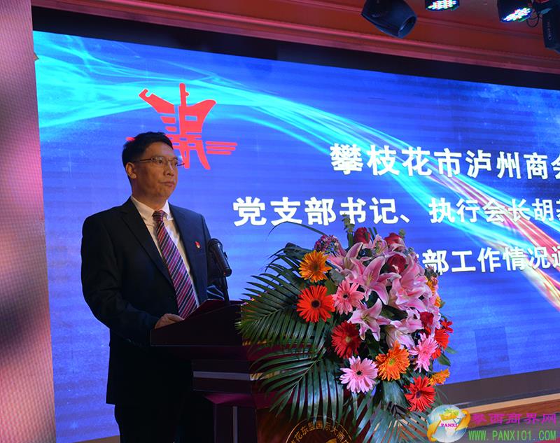 攀枝花市瀘州商會執(zhí)行會長、黨支部書記胡基元作黨支部工作情況通報。