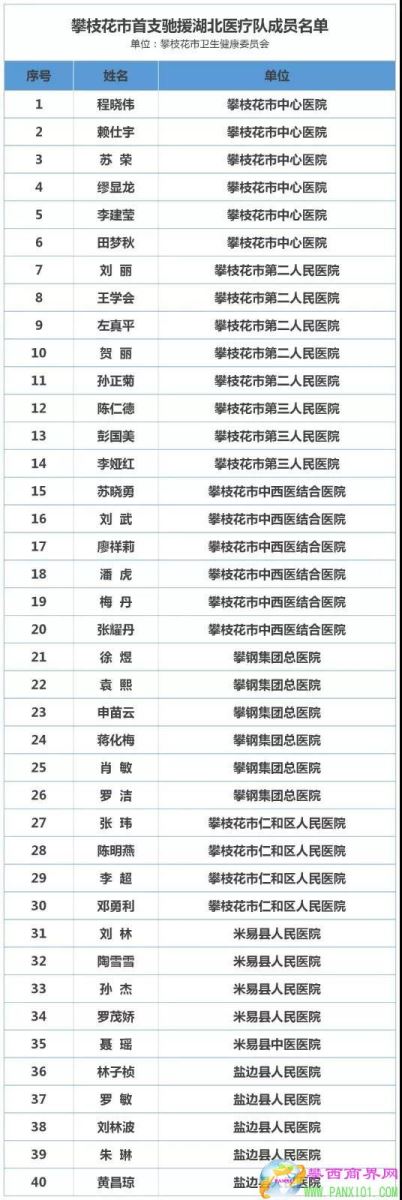 今天,由40名醫(yī)護人員組成的攀枝花市首支馳援湖北醫(yī)療隊出征。他們將隨四川省第四批援鄂醫(yī)療隊支援湖北,人員規(guī)模川內(nèi)第二,僅次于成都。