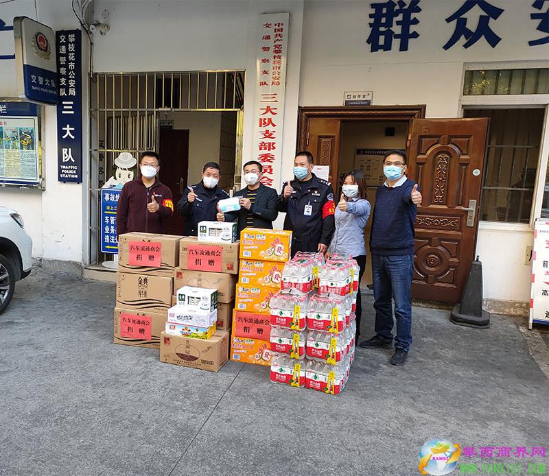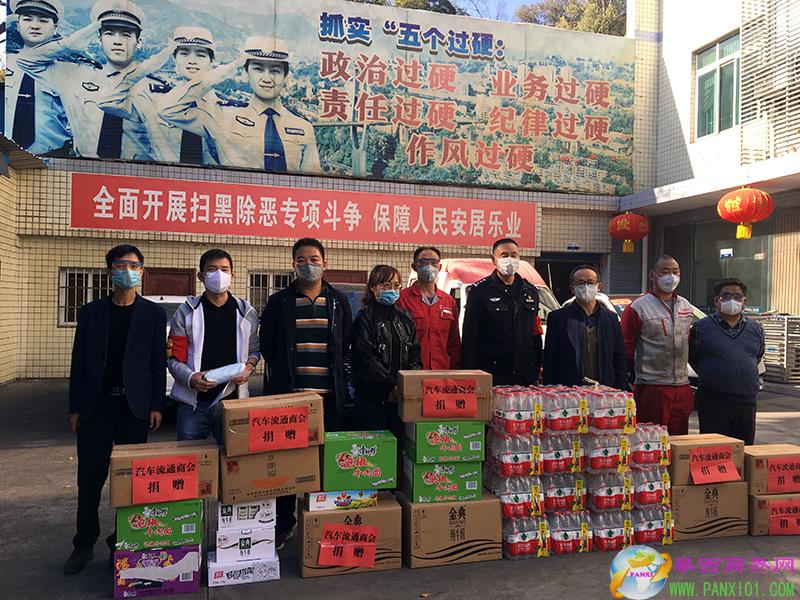 攀西商界網(wǎng)報道(記者 熊毅)記者從攀枝花市汽車流通商會獲悉,2月13日,商會全體班子成員和商會黨支部全體黨員在蘇洪明會長的帶領(lǐng)下,分四組向市交警支隊及其下屬大隊和車管所,市區(qū)商務(wù)局,市運管處,市交通綜合執(zhí)法支隊等單位捐贈礦泉水、牛奶、方便面、沙琪瑪?shù)仁称泛涂谡?、手套、護目鏡等防疫用品,表達商會全體會員的一片心意和慰問,感謝他們在疫情防控一線所做出的努力和貢獻。