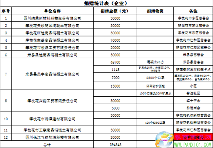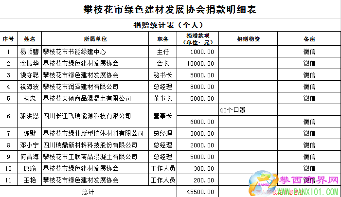 附:攀枝花市綠色建材發(fā)展協(xié)會捐贈明細表
