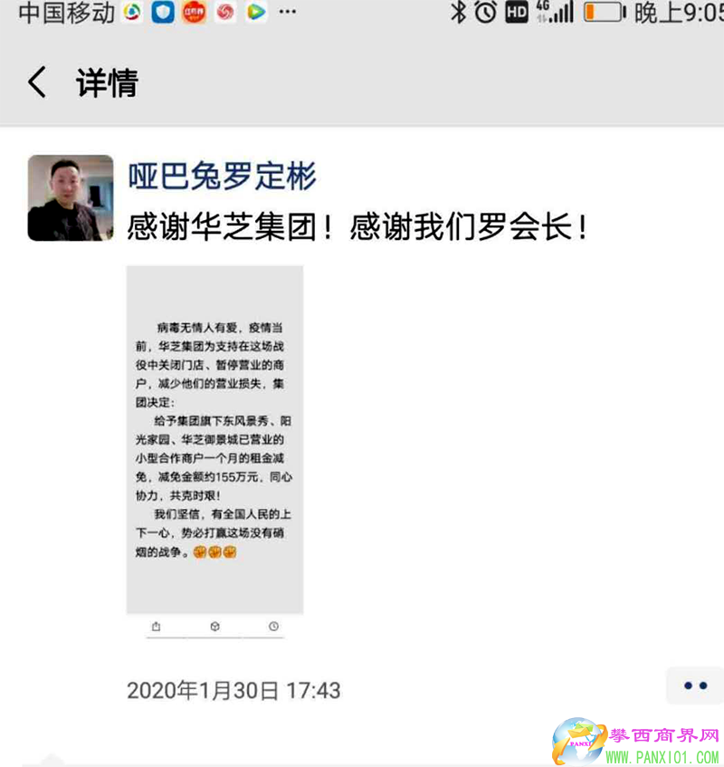 攀西商界網(wǎng)報(bào)道(記者 熊毅)逛街購(gòu)物、餐飲娛樂(lè)、親子休閑......春節(jié)本來(lái)是很多商家店鋪的黃金周。今年,一場(chǎng)突如其來(lái)的疫情打亂了人們的生活節(jié)奏,各大商圈人流無(wú)不減少。疫情無(wú)情人有情,1月30日,華芝集團(tuán)決定,對(duì)集團(tuán)旗下的東風(fēng)景秀、陽(yáng)光家園、華芝御景城共計(jì)87家商戶減免一個(gè)月的租金,減免金額高達(dá)155萬(wàn)余元,涉及營(yíng)業(yè)面積25633.2平米。