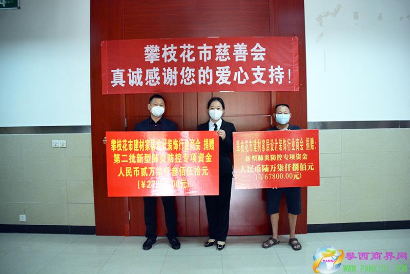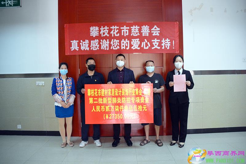 攀西商界網報道(記者 熊毅)3月3日,攀枝花市建材家居設計裝飾商會通過市慈善會第二次向市應急指揮部捐款,捐款額27350元,表達商會會員及員工支持全市打贏疫情防控狙擊戰(zhàn)的信心和深情厚誼,展現民營企業(yè)社會大愛和守望相助的精神。