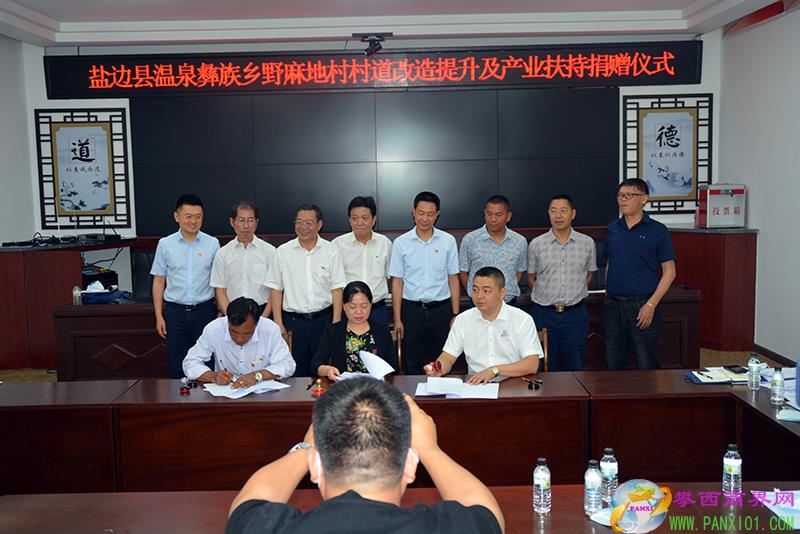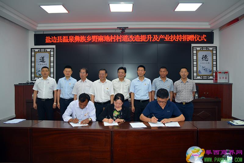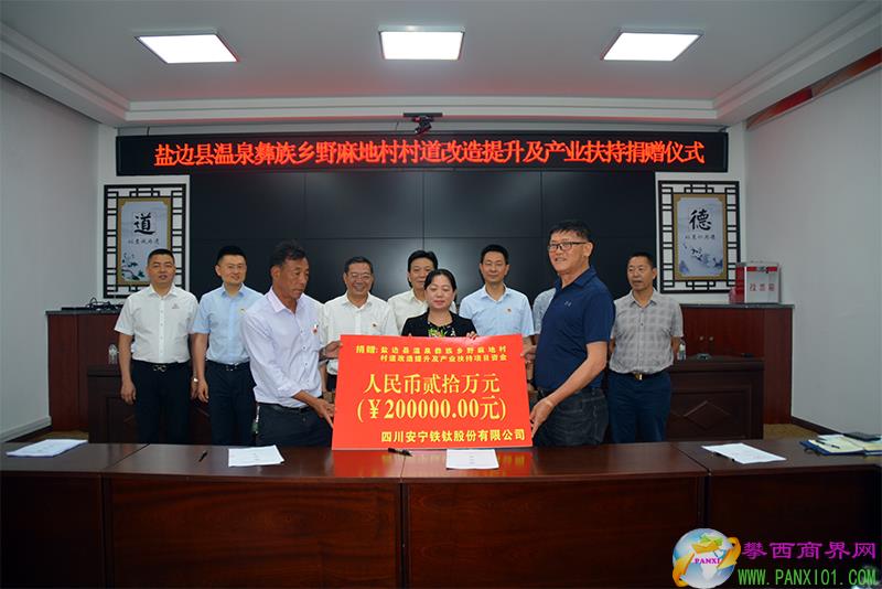 攀西商界網(wǎng)報(bào)道(黃海 記者 熊毅)2020年是全面建成小康社會目標(biāo)實(shí)現(xiàn)之年,是全面打贏脫貧攻堅(jiān)戰(zhàn)收官之年。4月10日,攀枝花市工商聯(lián)在攀枝花市扶貧和移民工作局七樓會議室舉行捐贈儀式,愛心企業(yè)四川安寧鐵鈦股份有限公司、四川攀商實(shí)業(yè)有限公司、中國建設(shè)銀行攀枝花分行和攀枝花市歸國華僑聯(lián)合會,通過四川省扶貧基金會攀枝花分會向鹽邊縣溫泉彝族鄉(xiāng)野麻地村捐款27萬元用于村道改造提升及產(chǎn)業(yè)扶持。
