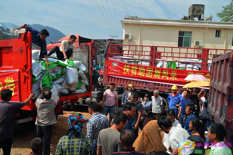 有機(jī)肥發(fā)放現(xiàn)場(chǎng),熱鬧非凡。“產(chǎn)業(yè)扶貧助農(nóng)增收,企村互動(dòng)共促發(fā)展”的橫幅格外醒目。村民們開著自家摩托車早早來到現(xiàn)場(chǎng)等候交接。隨后,攀枝花立新養(yǎng)殖開發(fā)有限公司的3輛大型卡車?yán)鴿M滿的自產(chǎn)“芙格萊”品牌生物有機(jī)肥緩緩開進(jìn)現(xiàn)場(chǎng),車身上懸掛著滿滿的祝福標(biāo)語:“脫貧致富快,全靠產(chǎn)業(yè)帶”;“萬眾一心加油干,打贏脫貧攻堅(jiān)戰(zhàn)”;“扶貧助困展風(fēng)采,美麗金花塘明天更輝煌”。