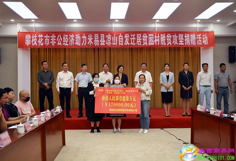 米易縣工商聯(lián)、縣扶貧移民局和撒蓮鎮(zhèn)等部門參加現(xiàn)場(chǎng)捐贈(zèng)儀式。