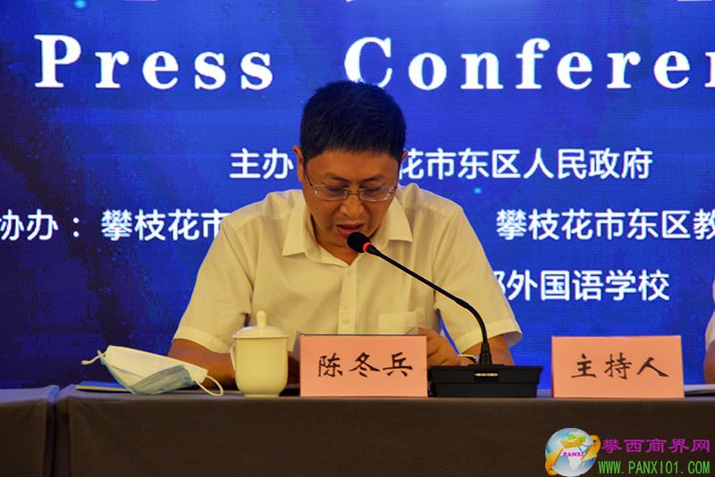 中共攀枝花市東區(qū)區(qū)委教育工委書記、東區(qū)教育和體育局黨組書記、局長(zhǎng)陳冬兵主持新聞發(fā)布會(huì)。
