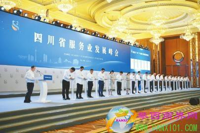 6月9日,四川省服務業(yè)發(fā)展峰會上,183個項目現(xiàn)場簽約。 四川在線記者 楊樹 攝