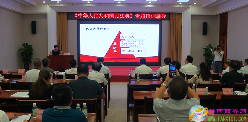 攀西商界網(wǎng)報(bào)道(記者 熊毅)為推進(jìn)全面依法治國(guó)、加快建設(shè)社會(huì)主義法治國(guó)家,發(fā)展社會(huì)主義市場(chǎng)經(jīng)濟(jì)、鞏固社會(huì)主義基本經(jīng)濟(jì)制度,促進(jìn)攀枝花民營(yíng)企業(yè)依法經(jīng)營(yíng),誠(chéng)信經(jīng)營(yíng),7月24日,攀枝花市工商聯(lián)(總商會(huì))組織全市民營(yíng)企業(yè)代表學(xué)習(xí)《中華人民共和國(guó)民法典》。