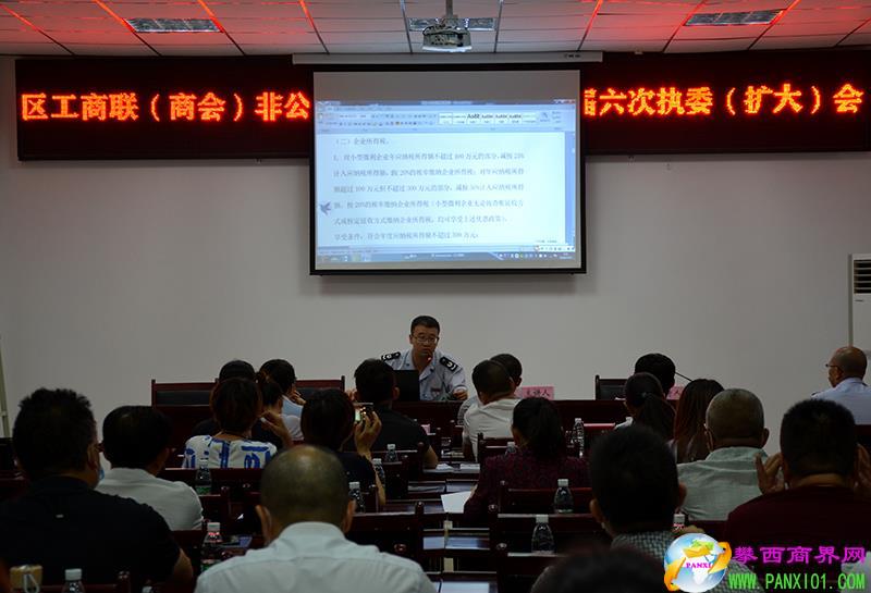 攀西商界網(wǎng)報(bào)道(記者 余付蓮)7月31日,仁和區(qū)工商聯(lián)(商會)在區(qū)委黨校一樓會議室,組織開展非公經(jīng)濟(jì)人士專題培訓(xùn)。市金融工作局、區(qū)稅務(wù)局、區(qū)人社局就小微企業(yè)融資、稅收優(yōu)惠和企業(yè)社會保障等針對性優(yōu)惠政策進(jìn)行了宣講,助企業(yè)復(fù)產(chǎn)紓難解困。仁和區(qū)工商聯(lián)黨組成員和派駐紀(jì)檢組組長、仁和區(qū)部分非公經(jīng)濟(jì)代表人士、區(qū)工商聯(lián)(商會)秘書長、執(zhí)行委員,各鄉(xiāng)鎮(zhèn)(街道)商會會長、秘書長等80余人參加了培訓(xùn)。