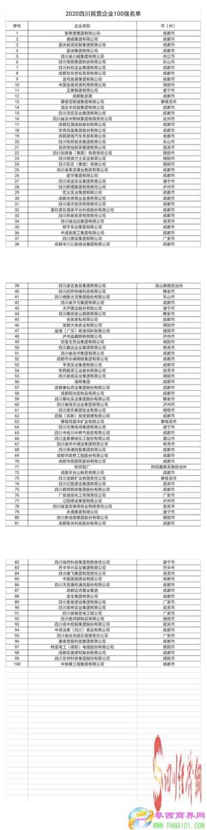 9月29日,四川省工商聯(lián)在上規(guī)模民營企業(yè)調(diào)研基礎(chǔ)上,發(fā)布“2020四川民營企業(yè)100強”榜單及“2020四川民營企業(yè)100強調(diào)研分析報告”。榜單顯示,新希望集團、通威集團、藍(lán)光投資控股集團位居前三。