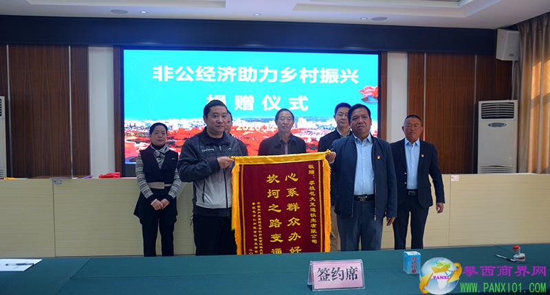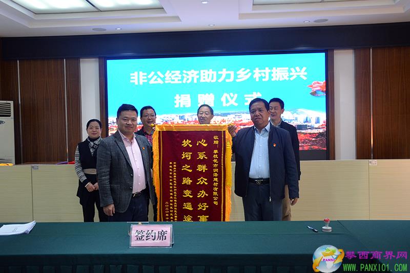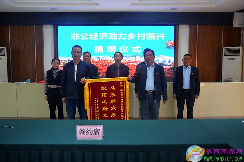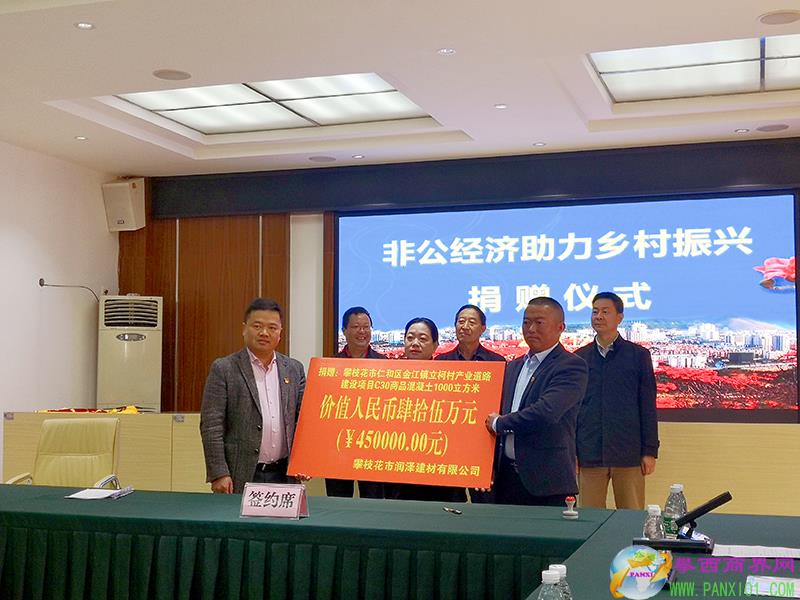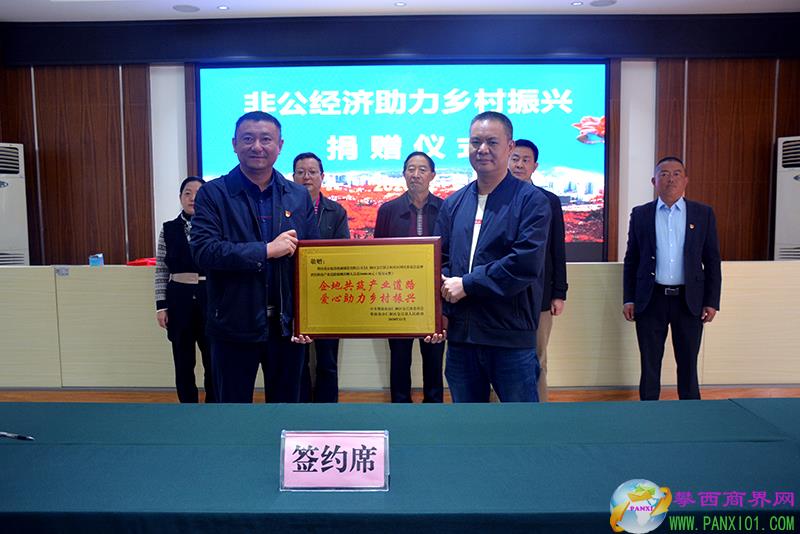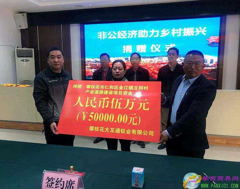 攀西商界網(wǎng)報道(記者 熊毅)產(chǎn)業(yè)要發(fā)展,企業(yè)來鋪路。12月11日,在釩鈦高新區(qū)(釩鈦新城)管委會、市工商聯(lián)及各相關(guān)部門的積極推動下,仁和區(qū)金江鎮(zhèn)非公經(jīng)濟助力鄉(xiāng)村振興公益捐贈儀式在釩鈦高新區(qū)(釩鈦新城)管委會舉行。當天,轄區(qū)潤澤建材、大互通鈦業(yè)、旭鼎機械3家民營企業(yè)通過四川省扶貧基金會攀枝花市分會向金江鎮(zhèn)立柯村麥沖灣組捐贈共計55萬余元的物資及現(xiàn)金,擬對該村民小組1.8公里產(chǎn)業(yè)道路進行硬化。