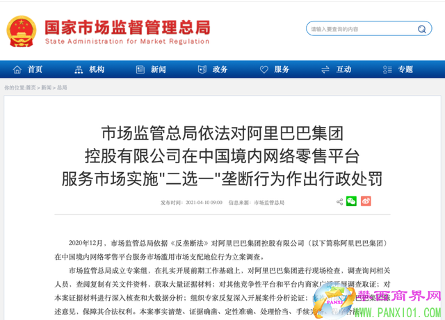 “二選一”壟斷!阿里巴巴被罰182.28億