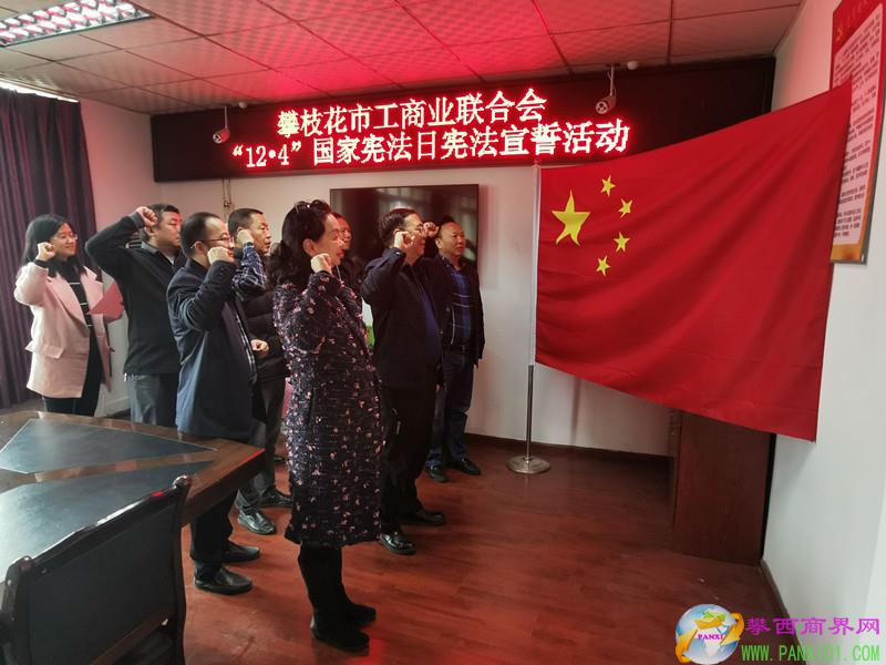 攀西商界網(wǎng)報(bào)道(攀枝花市工商聯(lián) 供稿)在第八個(gè)“國家憲法日”來臨之際,12月2日下午,攀枝花市工商聯(lián)組織全體機(jī)關(guān)干部職工集中學(xué)習(xí)《中華人民共和國憲法》、奏唱國歌并向憲法宣誓。市人大常委會副主任、市工商聯(lián)主席趙琪同志手撫憲法領(lǐng)誦誓詞,其他宣誓人在后方列隊(duì)站立,跟誦誓詞。