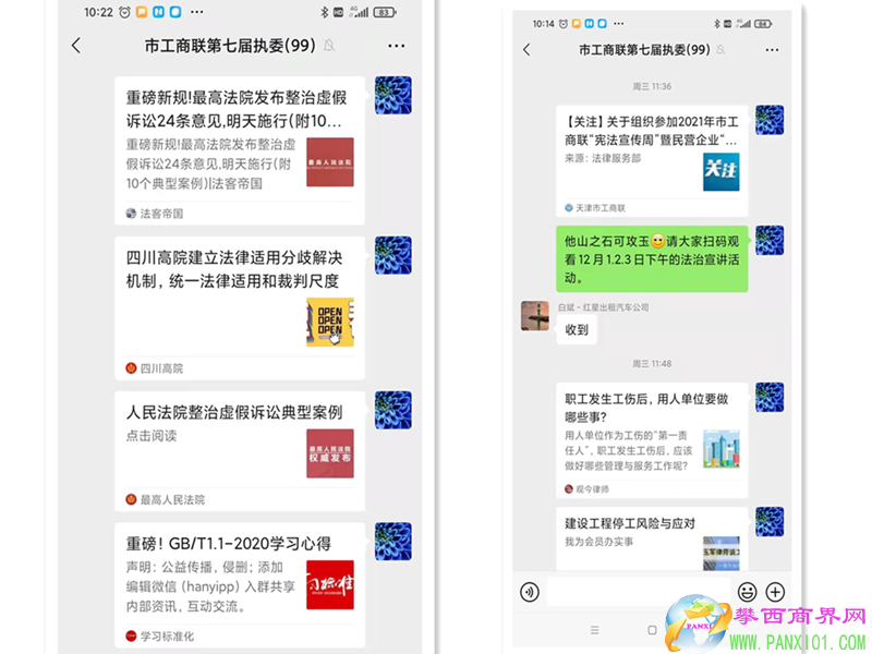 遵照疫情防控要求,在不宜集中學(xué)習(xí)和流動(dòng)宣講的情況下,市工商聯(lián)通過電話、短信、微信工作群、電子郵件和《攀西商界網(wǎng)》等多種方式,及時(shí)向會員企業(yè)推送有關(guān)企業(yè)合同履行、勞資關(guān)系、生產(chǎn)經(jīng)營等方面的法律知識和案例,為所屬商(協(xié))會和廣大會員企業(yè)普及相關(guān)法律知識,幫組企業(yè)及時(shí)了解和掌握有關(guān)法律規(guī)定,為企業(yè)在有效防控法律風(fēng)險(xiǎn)方面豐富了思路方法。
