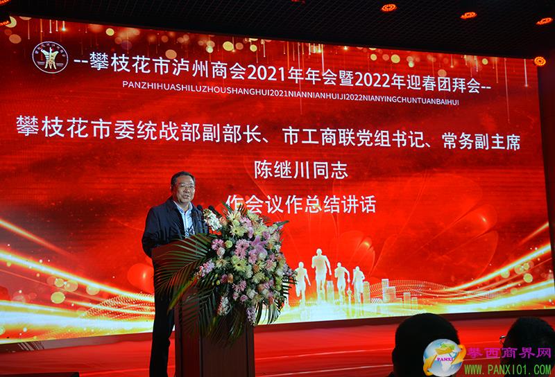 市委統(tǒng)戰(zhàn)部副部長、市工商聯(lián)黨組書記、常務副主席陳繼川出席并講話。他首先對獲得表彰表揚的先進單位、優(yōu)秀會長、優(yōu)秀會員以及考上大學的會員子女表示祝賀。對2020-2021年,市瀘州商會勇?lián)鐣熑?,在扶貧攻堅、公益事業(yè)、防疫抗震等方面積極捐款捐物、修橋修路所作出的貢獻給予充分肯定。2022年將是機遇與挑戰(zhàn)并存的一年,他希望市瀘州商會繼續(xù)按照“政治建會,團結(jié)立會,服務興會,改革強會”的總體方針,不斷推進商會發(fā)展,在會員發(fā)展、經(jīng)濟服務、維權服務等方面做好工作,同時希望會員企業(yè)圍繞“三個圈層”,立足新發(fā)展階段,踐行新發(fā)展理念,融入新發(fā)展格局,不斷推進企業(yè)發(fā)展壯大,為攀枝花實現(xiàn)高質(zhì)量發(fā)展做出積極貢獻。