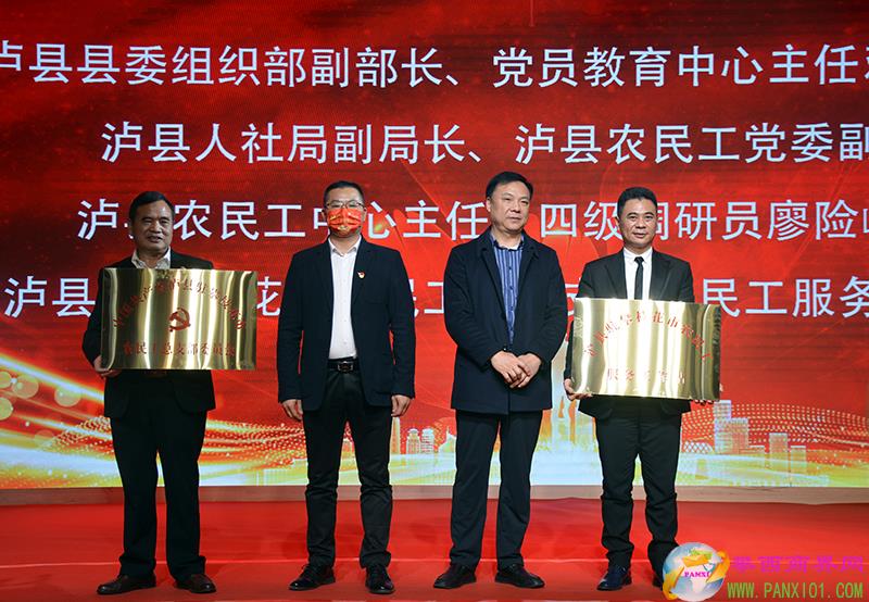 瀘縣縣委組織部副部長蔣昌林,瀘縣人社局副局長、瀘縣農(nóng)民工黨委副書記、瀘縣農(nóng)民工中心主任、四級調(diào)研員廖險峰等出席并為瀘縣駐攀枝花市農(nóng)民工黨總支和農(nóng)民工工作站授牌。