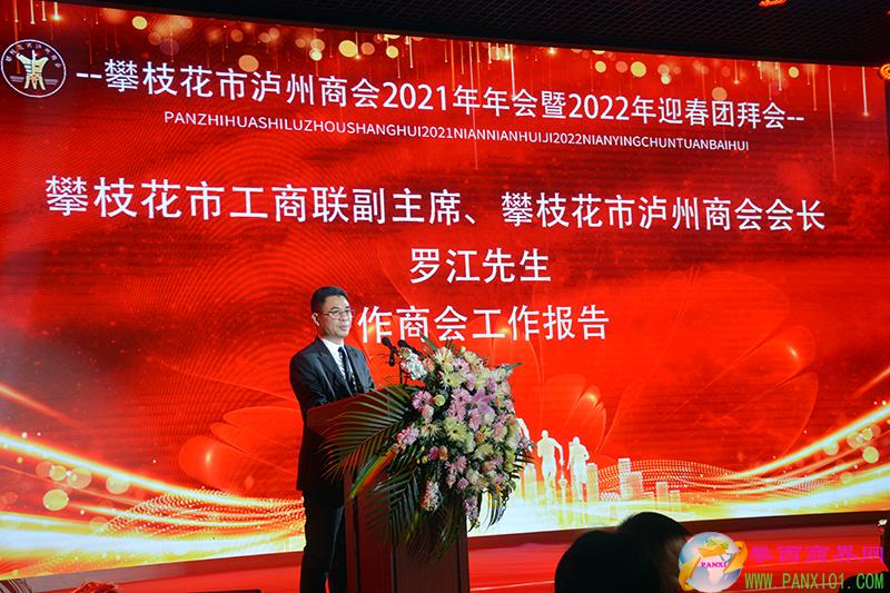 市工商聯(lián)副主席、攀枝花市瀘州商會會長羅江作工作報告,總結(jié)2020-2021年工作,展望2022年工作,推進商會健康、協(xié)調(diào)發(fā)展。羅江在報告中概括了商會工作主要內(nèi)容就是高舉旗幟,始終堅持黨的領導,牢固樹立和堅持社會主義方向;不斷加強商會自身建設,積極為社會作貢獻。在羅江的帶領下,商會工作做到了思路清晰,目標明確,措施得當,效果明顯。商會被全國工商聯(lián)評為“四好”商會,省和市評為先進商會,攀枝花市、瀘州市授予抗疫工作突出獎,脫貧攻堅先進獎,商會黨支部評為先進黨支部,五個會長、副會長、秘書長被瀘州市工商聯(lián)評為優(yōu)秀會長、秘書長,瀘縣縣委、縣政府發(fā)文對商會農(nóng)民工工作進行了表彰獎勵。據(jù)不完全統(tǒng)計,2020-2021年,攀枝花市瀘州商會會員為攀瀘兩地捐款捐物、修橋修路、扶貧攻堅、公益事業(yè)、防疫、地震等共捐贈近2000萬元。特別是在疫情中103名會員短短二天捐款65萬元,瀘州地震也是短短一天105名會員就捐贈23萬元現(xiàn)金并親自送往地震災區(qū),同災區(qū)人民站在一起,共渡難關。