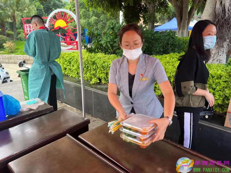 公司總經(jīng)理曾進(jìn)帶隊(duì),自9月5日起,首先帶領(lǐng)全體黨員15人組成“抗疫志愿服務(wù)隊(duì)”,從上午8:00到晚上19:00堅(jiān)守在抗疫一線,配合米易縣新北社區(qū)、河西社區(qū)在文化廣場(chǎng)參與核酸檢測(cè)采樣工作;其次指派安寧明珠后勤保障服務(wù)隊(duì),每天無償提供抗疫一線所有醫(yī)護(hù)人員和志愿者中、晚餐盒飯,截止日前,已免費(fèi)提供220合盒飯,折合人民幣價(jià)值6600元。