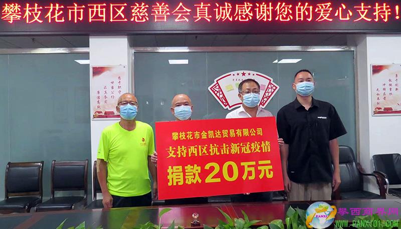 攀西商界網(wǎng)報道(記者 熊毅)“20萬元‘抗疫’捐款,馬上安排公司財務轉(zhuǎn)賬給你們,請你們做好接收準備”。這是攀枝花市工商聯(lián)副主席、市金凱達貿(mào)易有限公司董事長劉陳給西區(qū)慈善會的通話實錄。守望相助,風雨同擔。在全市上下同心協(xié)力抗擊新冠肺炎疫情的關鍵時期,攀枝花市金凱達貿(mào)易公司積極履行社會責任,支持疫情防控,關心疫情防控一線工作人員,用實際行動為疫情防疫“鼓勁加油”,用真情和愛心傳遞社會正能量,助力西區(qū)疫情防控工作。