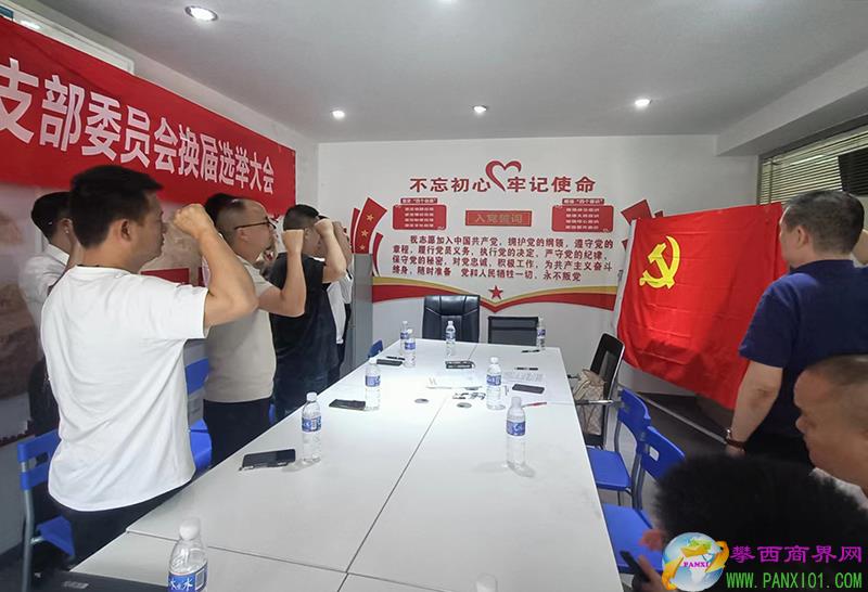 選舉大會結束后,全體黨員面向黨旗,舉起右手,重溫入黨誓詞。