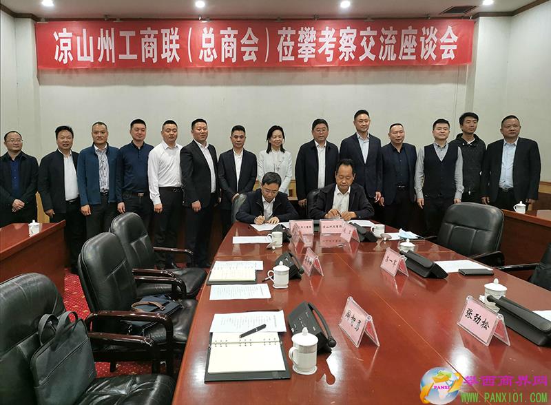 涼山州工商聯(lián)黨組成員、副主席楊呷且和攀枝花市工商聯(lián)黨組成員、副主席周智勇代表兩地工商聯(lián)簽訂了《友好工商聯(lián)(商會(huì))合作協(xié)議》。