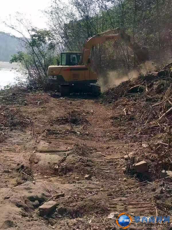 挖掘機進(jìn)行便道施工以及清表作業(yè)。
