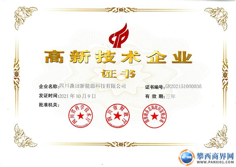 四川森田新能源科技有限公司榮獲高新技術(shù)企業(yè)認證。