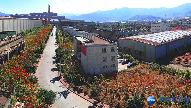 刺桐花盛開的西昌鋼釩熱軋生產線廠區(qū)