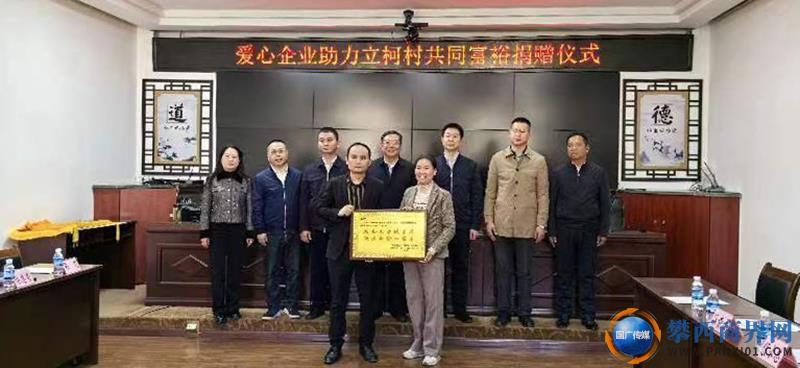 吃水不忘挖井人,在捐贈儀式上,立柯村民代表向愛心企業(yè)回贈了錦旗,金江鎮(zhèn)領(lǐng)導(dǎo)向愛心企業(yè)贈送了牌匾。