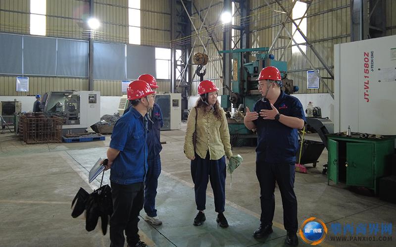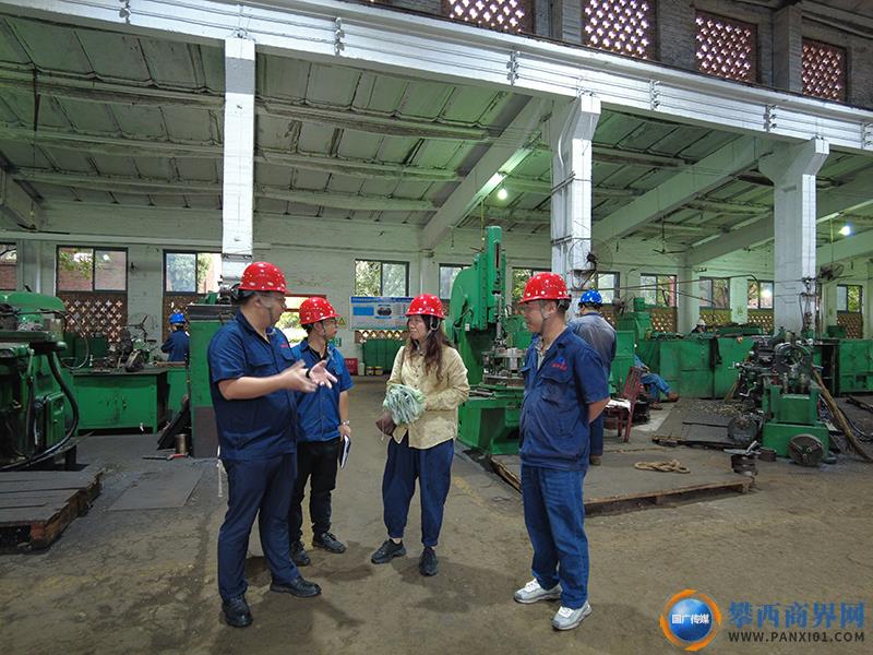 王茜一行首先來到攀枝花攀煤礦山機(jī)械制造有限公司,頗具年代感的高大紅磚廠房里設(shè)備轟隆隆作響,一派繁忙景象。公司副總經(jīng)理張晨輝、總經(jīng)理助理敖學(xué)超、生產(chǎn)技術(shù)部副部長(zhǎng)楊宗寶帶著王茜一行來到車間生產(chǎn)現(xiàn)場(chǎng)介紹情況。