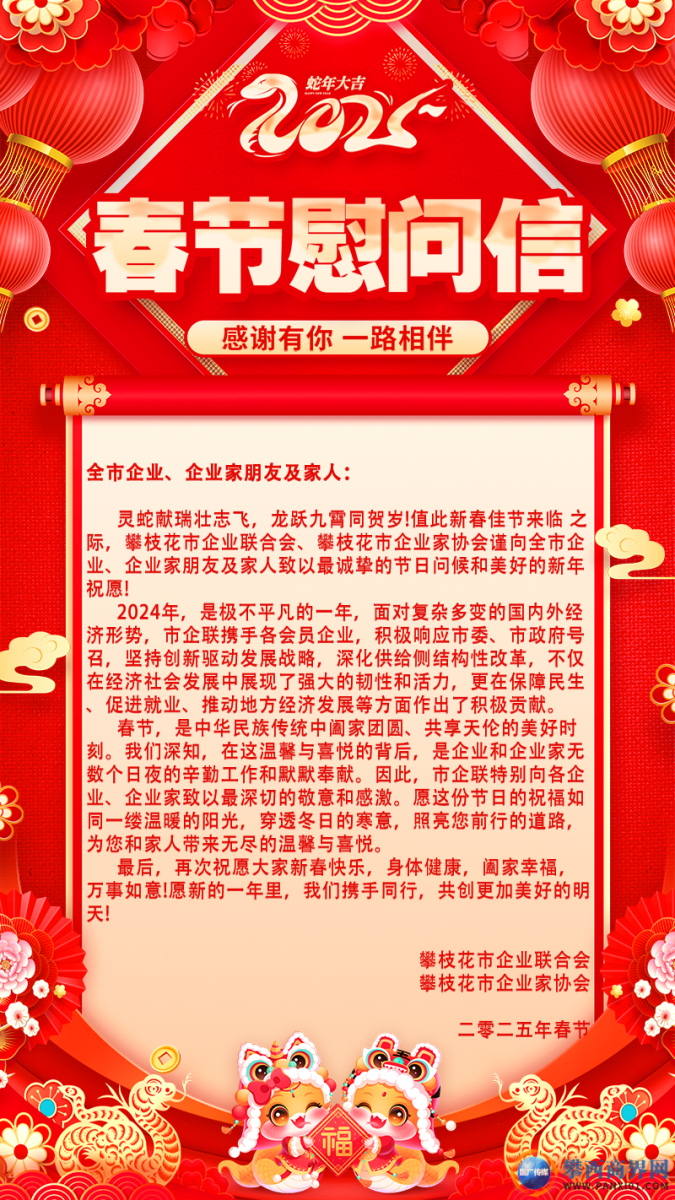 攀枝花市企業(yè)聯(lián)合會(huì) 攀枝花市企業(yè)家協(xié)會(huì)致全市企業(yè)、企業(yè)家朋友及家人的慰問信