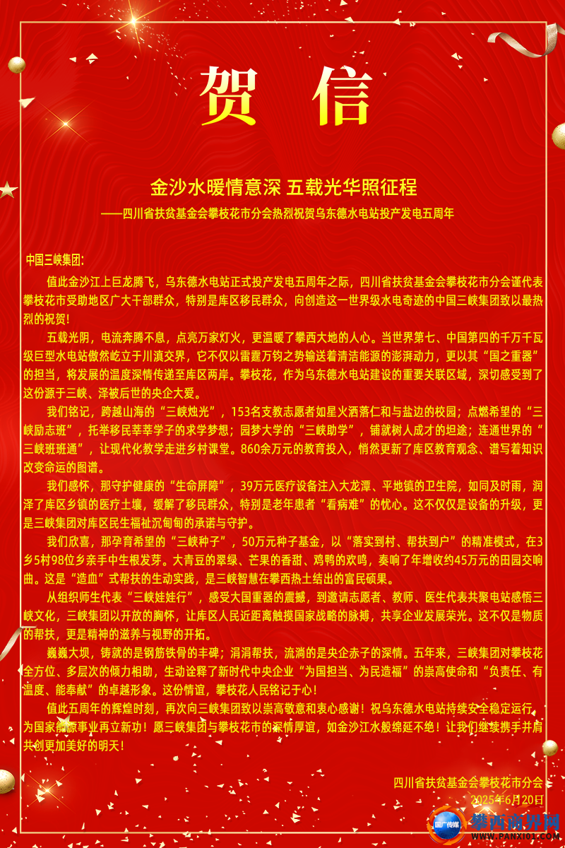 金沙水暖情意深 五載光華照征程 ——四川省扶貧基金會攀枝花市分會熱烈祝賀烏東德水電站投產(chǎn)發(fā)電五周年