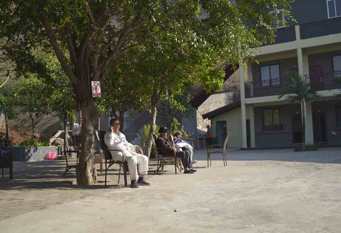 胡廣德老人(左一),今年79歲,是攀枝花礦務(wù)局花山礦退休的采煤工人,子女都在外地工作,跟隨子女生活,不習(xí)慣外地氣候,女兒特地為老人在寶鼎金沙買了一套房,老伴去年走了,自己獨(dú)自生活,走路不行,非常孤獨(dú),當(dāng)時(shí)體重才105斤,2015年11月4日藍(lán)湖康養(yǎng)中心開業(yè)就入住至今,體重長(zhǎng)了10多斤,身體好了,拄了10年拐杖也不用了。拄著拐杖入住的高大爺也同胡大爺一樣,現(xiàn)在也不用拄拐杖了,自己可以慢慢行走了。