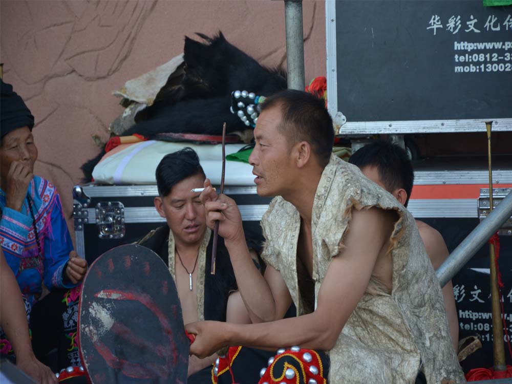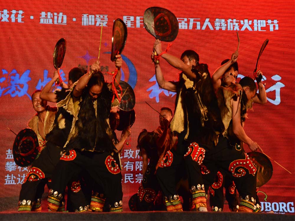 火把節(jié)這天,周邊元謀、永仁、龍街等地的山民都挑著自己的山貨、土貨,趕著騾馬,跋山涉水來到趙家店,他們搭起帳篷,支起鍋灶,一串串山貨和一碗碗香氣撲鼻的牛羊湯鍋?zhàn)屵^往的人們流連忘返。中午,在山上坡上,彝家人民支起磨秋,只見一對(duì)對(duì)青年男女在磨秋兩頭你上我下,人群中傳出一陣陣喝彩聲、歡笑聲。夜晚,在稍有平坦的山坡上,一堆堆篝火燃了起來,彝家小伙撥弄著三弦月琴,姑娘們手牽手圍著火堆隨一陣陣弦聲跳了起來,烈烈的火焰竄得老高老高,映紅了年青人的面孔。尊敬的客人,如果你在場(chǎng)的話,你一定會(huì)不顧一切地?cái)D進(jìn)人群,牽起彝家姑娘的手,圍著篝火,跳到天亮。
