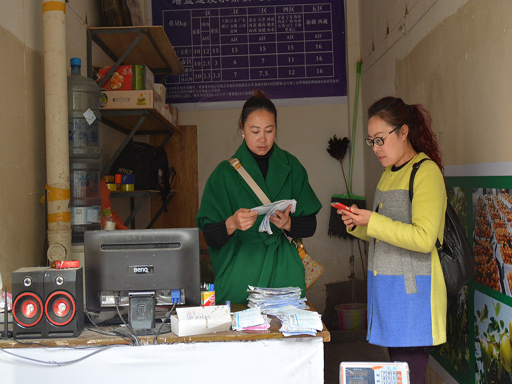 2016年,臨近春節(jié),姐妹倆正在快遞公司門口發(fā)快遞,手里還捏著一扎厚厚的訂單!