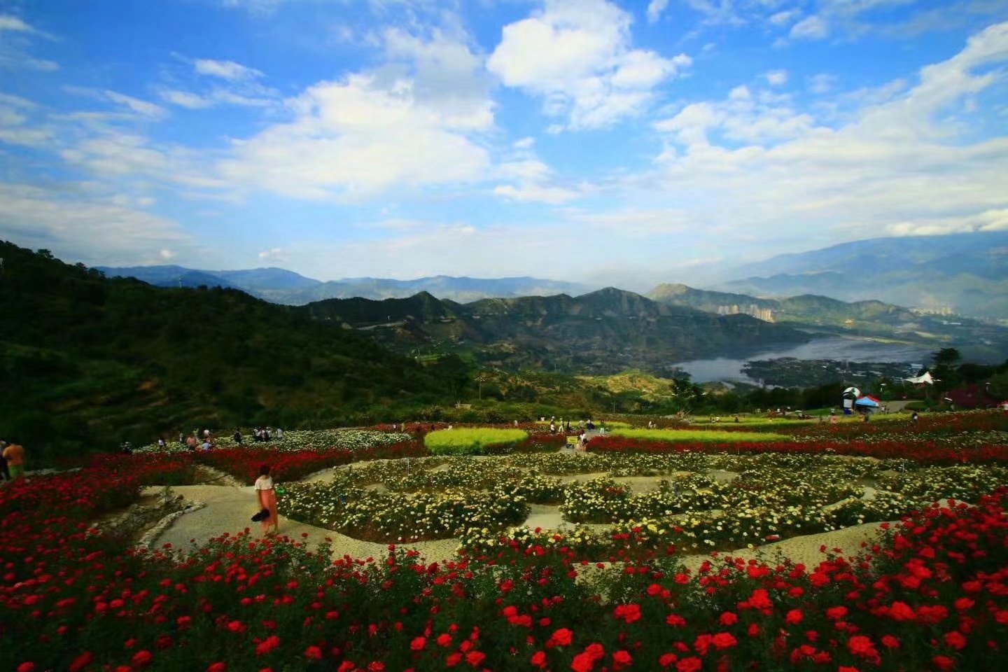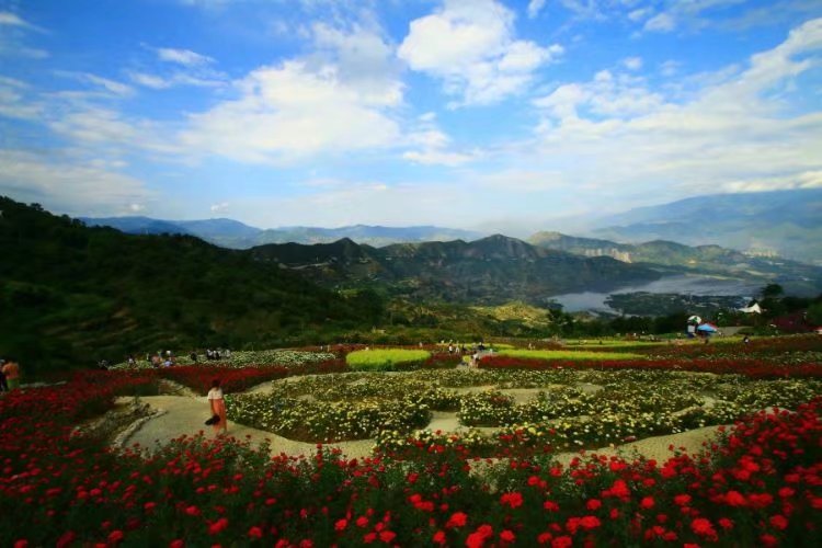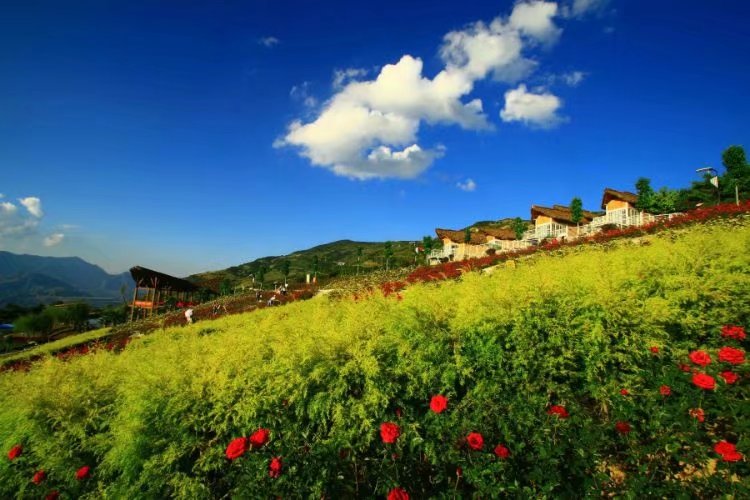 花舞人間位于阿署達(dá)村,阿署達(dá)村是一個有著600年歷史文化的彝族村落,坐擁秀麗山水、背靠蒼翠官山,天壽湖盡攬懷 中,艷麗的三角梅和豐富的果蔬遍布田園山鄉(xiāng)。炮仗花、天竺葵、指甲花、向日葵、紫色朱蕉、滿天星等構(gòu)成花山、花街、花巷、花欄、花道。2萬畝果園里,種植著釋迦果、芒果、桂圓、蓮霧等溫帶、亞熱帶、熱帶水果。