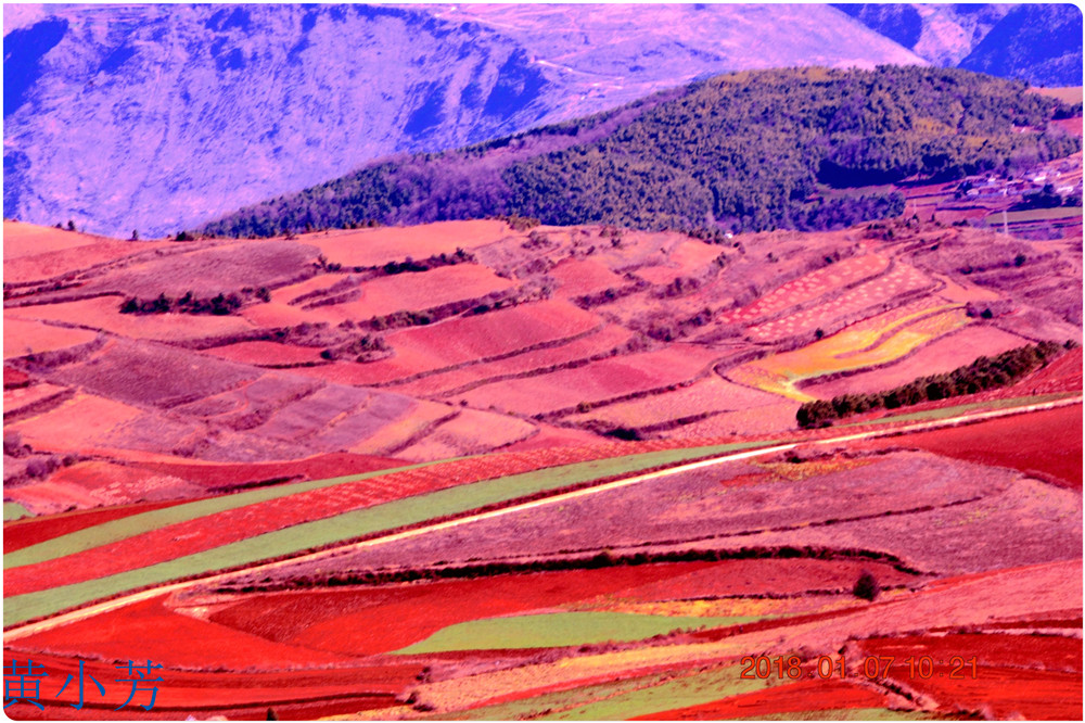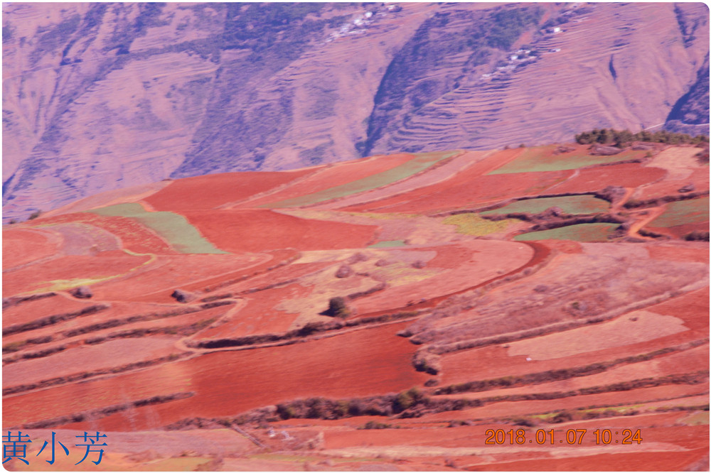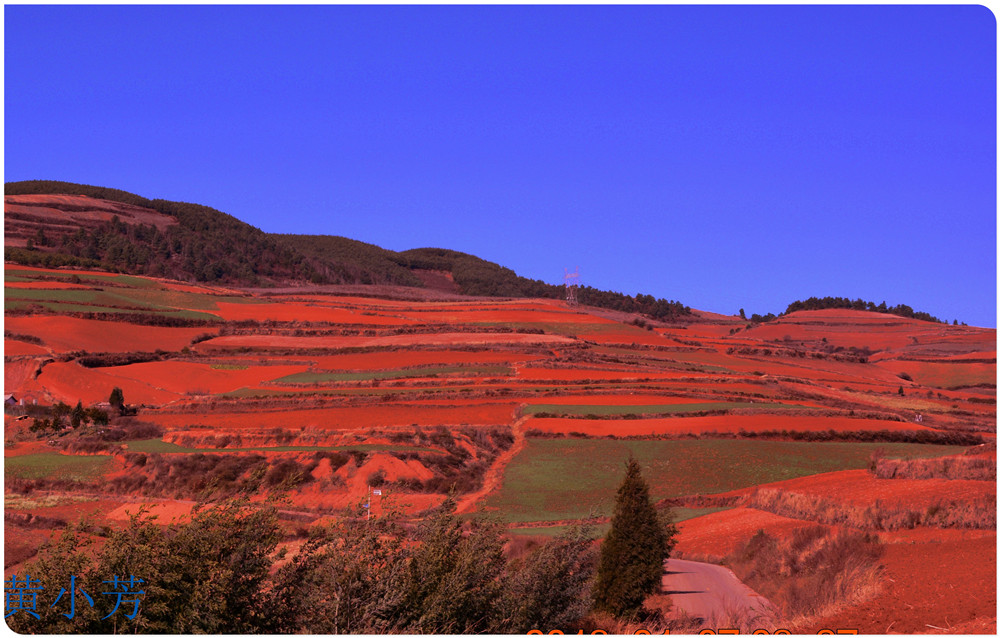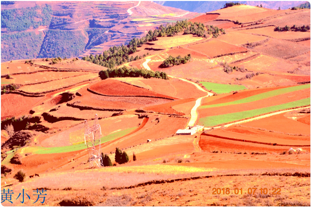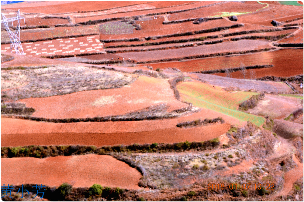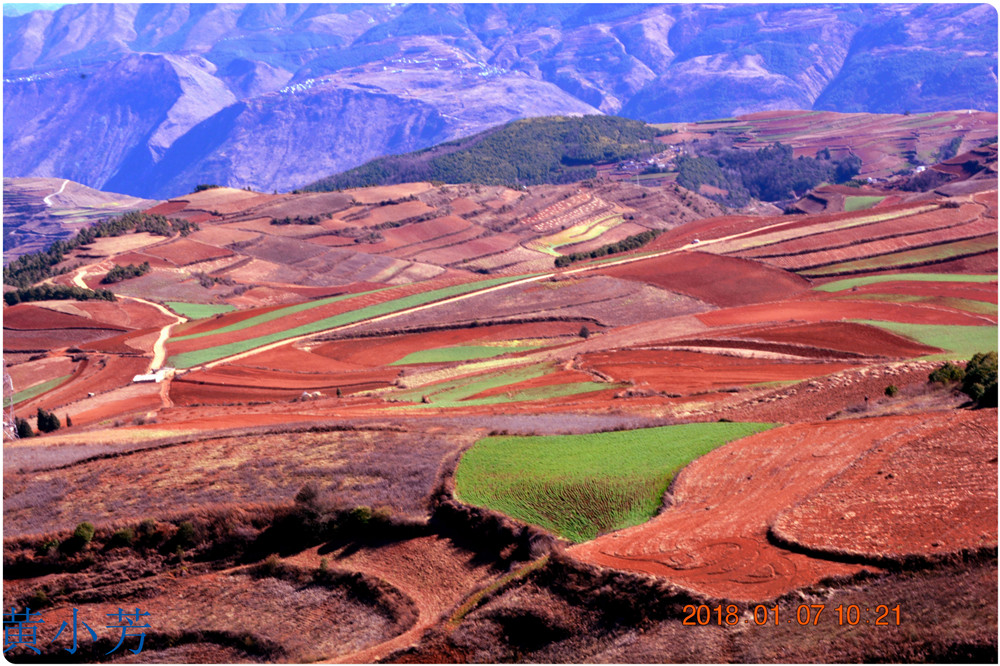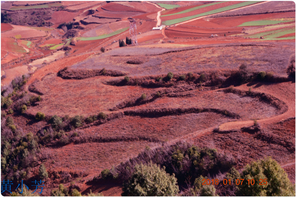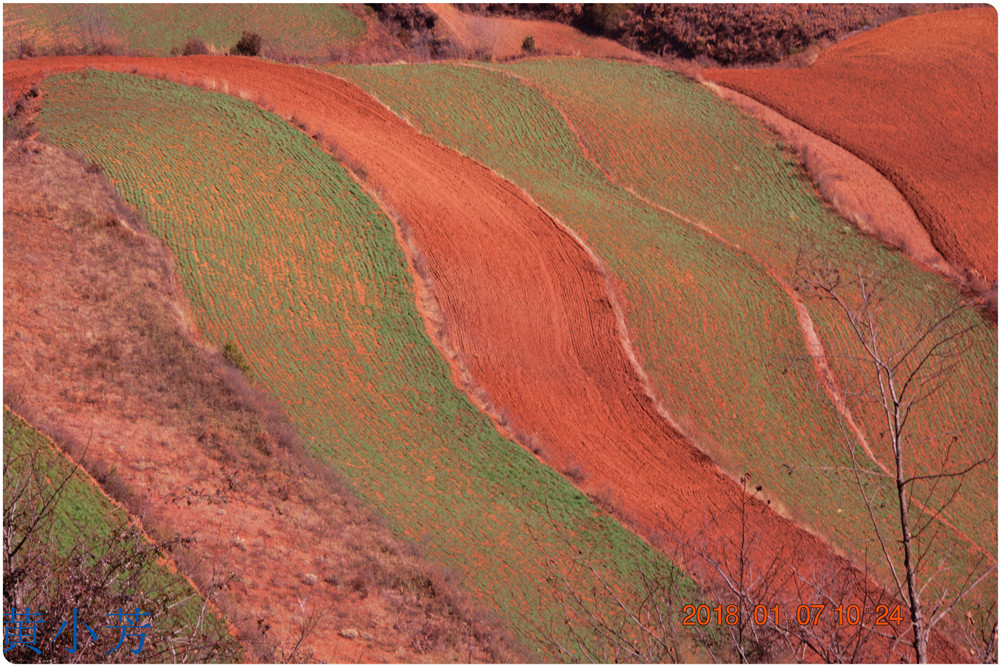 云南地處溫暖濕潤(rùn)的環(huán)境,土壤里的鐵質(zhì)經(jīng)過(guò)氧化慢慢沉積下來(lái),逐漸形成了炫目的色彩。東川紅土地指的是位于昆明市東川區(qū)西南40多公里的紅土地鎮(zhèn)、有一名叫“花石頭”(在109公里程碑處)的地方,這里方圓近百里的區(qū)域是云南紅土高原上最集中、最典型、最具特色的紅土地。每年9至12月,一部分紅土地翻根待種,另一部分紅土地已經(jīng)種上綠綠的青稞或小麥和其他農(nóng)作物,遠(yuǎn)遠(yuǎn)看去,就像上天涂抹的色塊,色彩絢麗斑斕,襯以藍(lán)天、白云和那變幻莫測(cè)的光束,構(gòu)成了紅土地壯觀的景色。