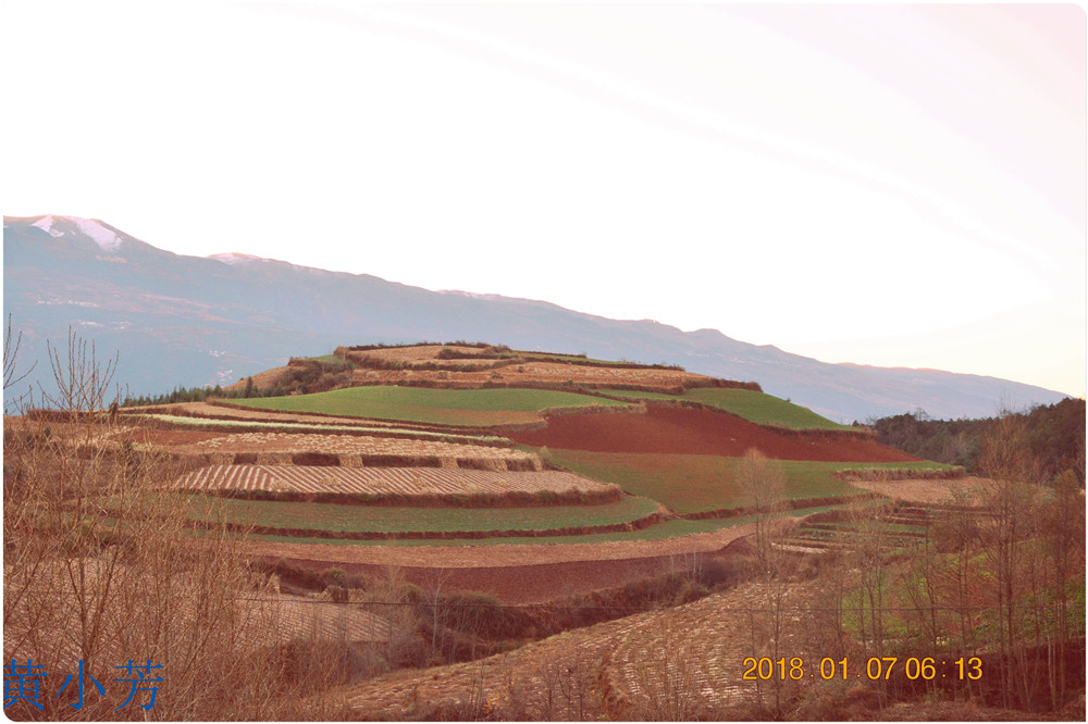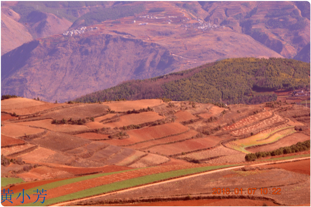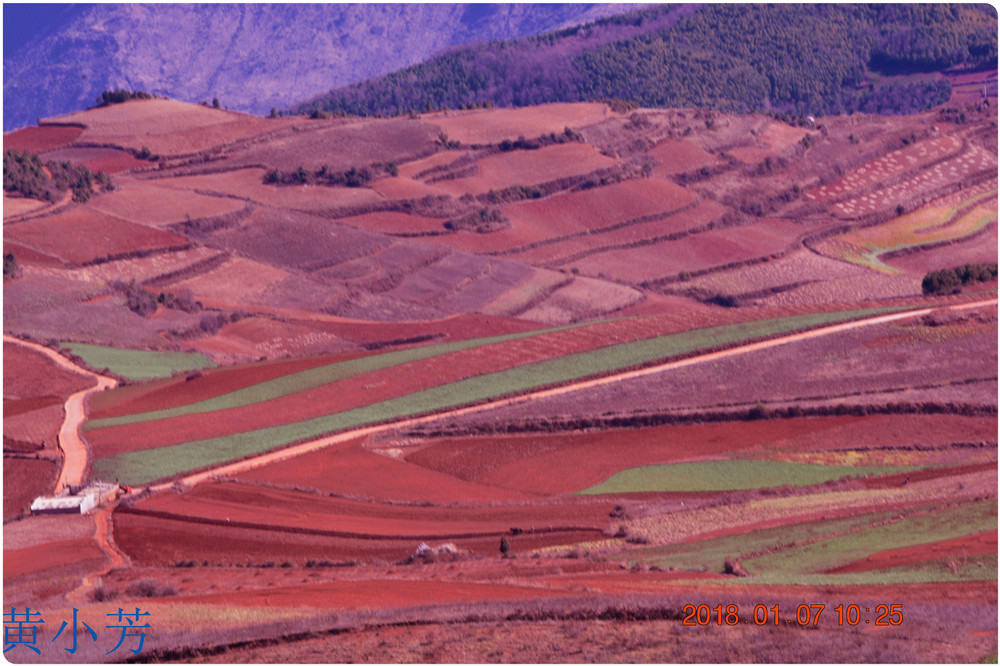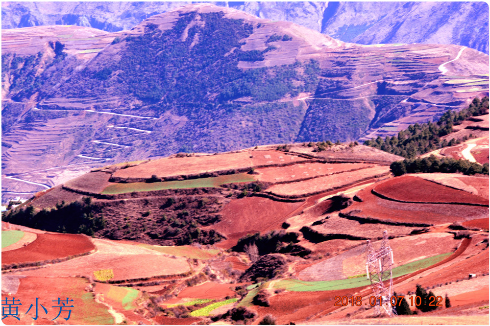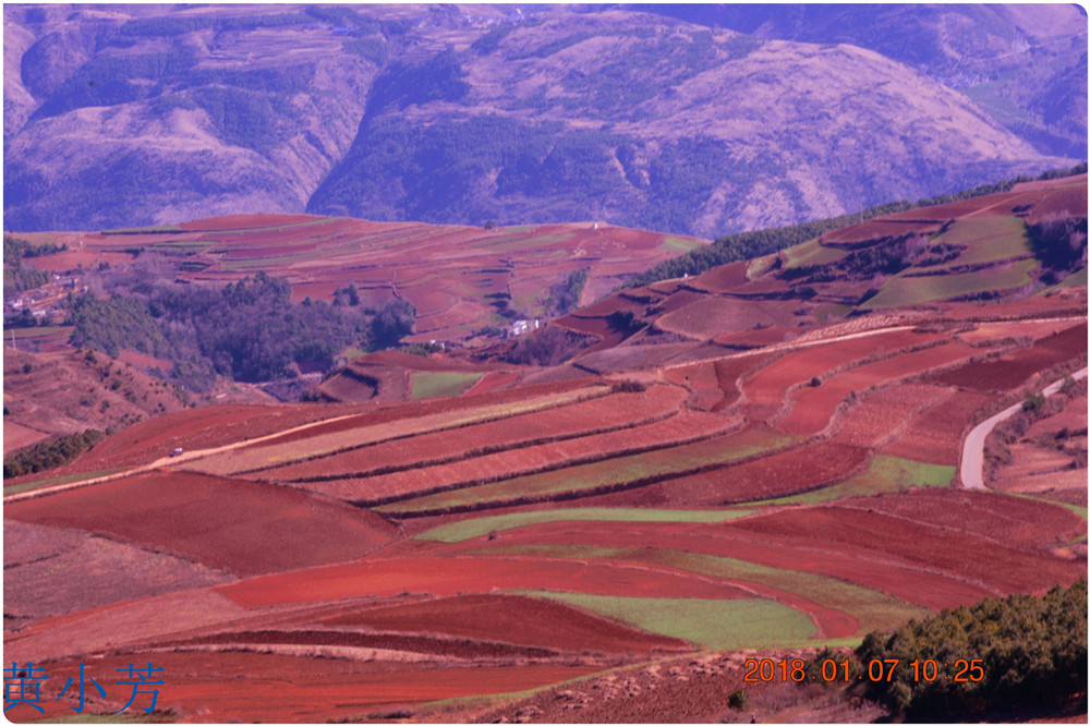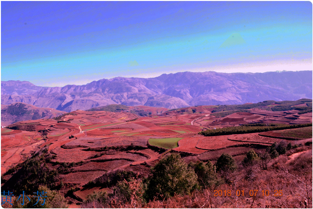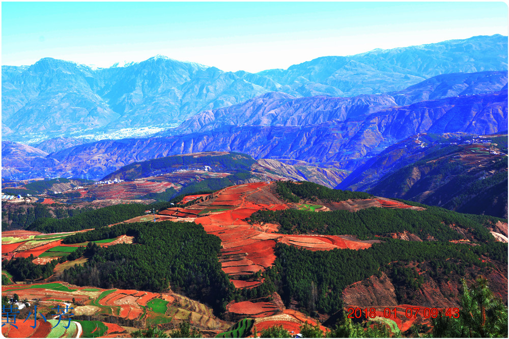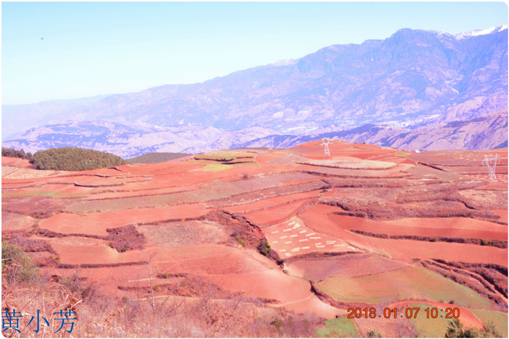 云南地處溫暖濕潤(rùn)的環(huán)境,土壤里的鐵質(zhì)經(jīng)過(guò)氧化慢慢沉積下來(lái),逐漸形成了炫目的色彩。東川紅土地指的是位于昆明市東川區(qū)西南40多公里的紅土地鎮(zhèn)、有一名叫“花石頭”(在109公里程碑處)的地方,這里方圓近百里的區(qū)域是云南紅土高原上最集中、最典型、最具特色的紅土地。每年9至12月,一部分紅土地翻根待種,另一部分紅土地已經(jīng)種上綠綠的青稞或小麥和其他農(nóng)作物,遠(yuǎn)遠(yuǎn)看去,就像上天涂抹的色塊,色彩絢麗斑斕,襯以藍(lán)天、白云和那變幻莫測(cè)的光束,構(gòu)成了紅土地壯觀的景色。