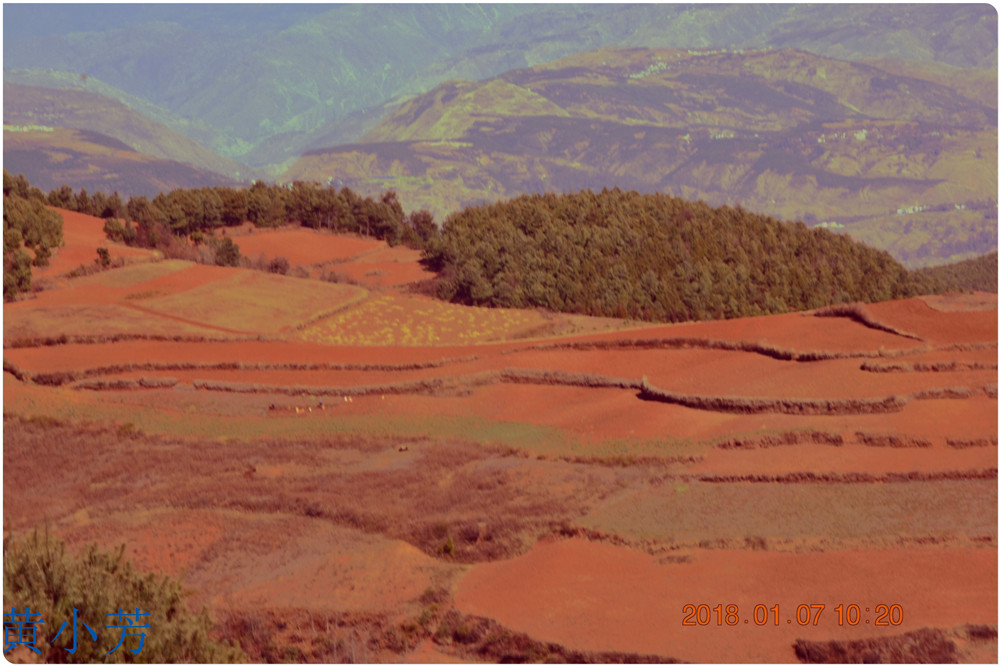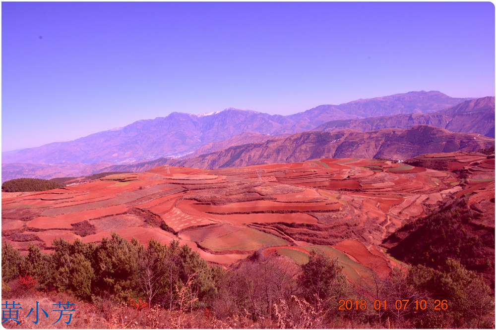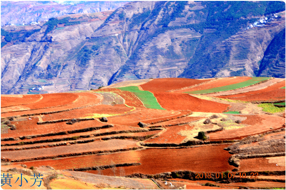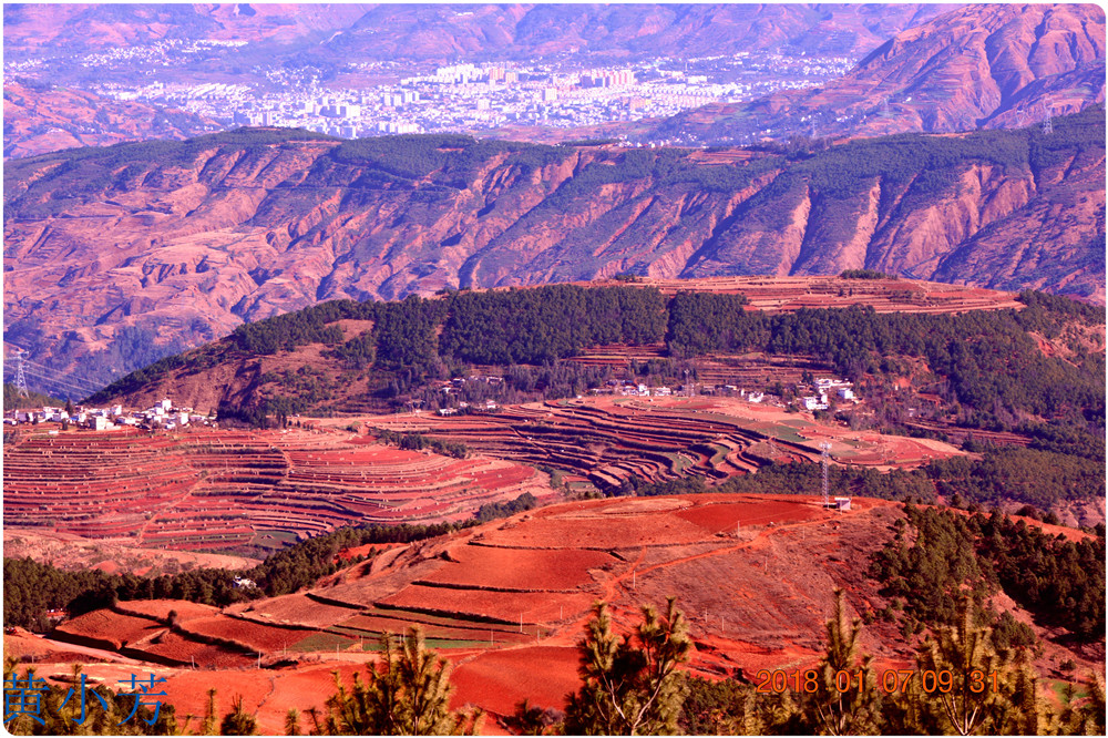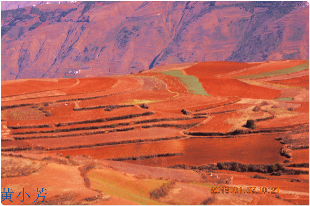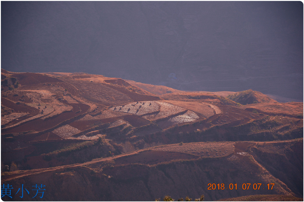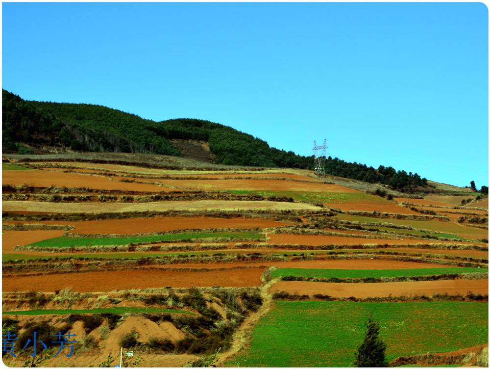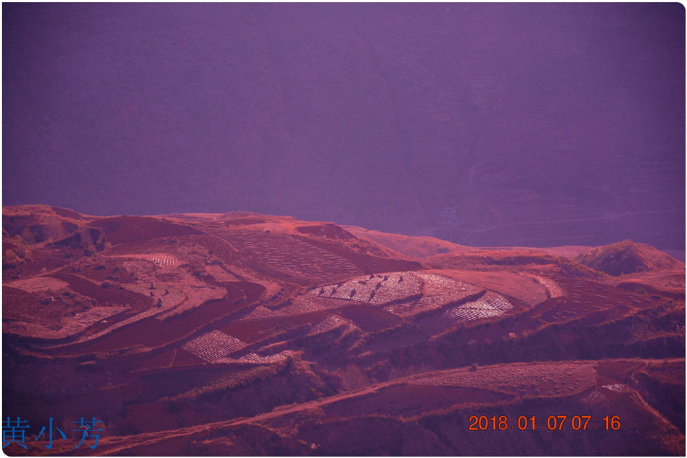 云南地處溫暖濕潤(rùn)的環(huán)境,土壤里的鐵質(zhì)經(jīng)過(guò)氧化慢慢沉積下來(lái),逐漸形成了炫目的色彩。東川紅土地指的是位于昆明市東川區(qū)西南40多公里的紅土地鎮(zhèn)、有一名叫“花石頭”(在109公里程碑處)的地方,這里方圓近百里的區(qū)域是云南紅土高原上最集中、最典型、最具特色的紅土地。每年9至12月,一部分紅土地翻根待種,另一部分紅土地已經(jīng)種上綠綠的青稞或小麥和其他農(nóng)作物,遠(yuǎn)遠(yuǎn)看去,就像上天涂抹的色塊,色彩絢麗斑斕,襯以藍(lán)天、白云和那變幻莫測(cè)的光束,構(gòu)成了紅土地壯觀的景色。