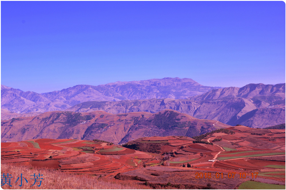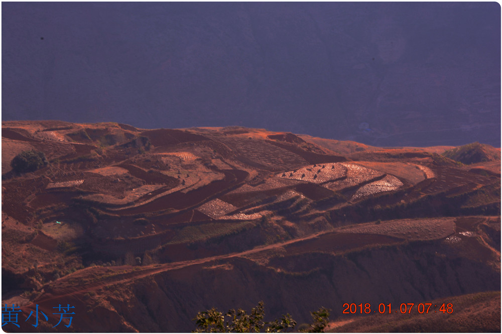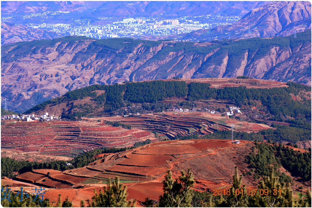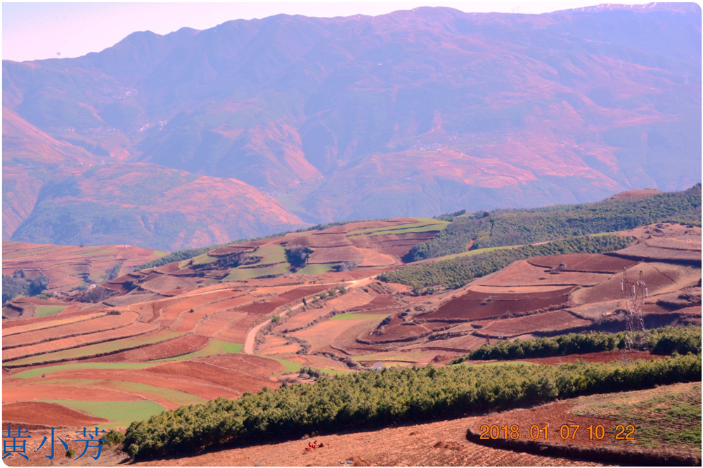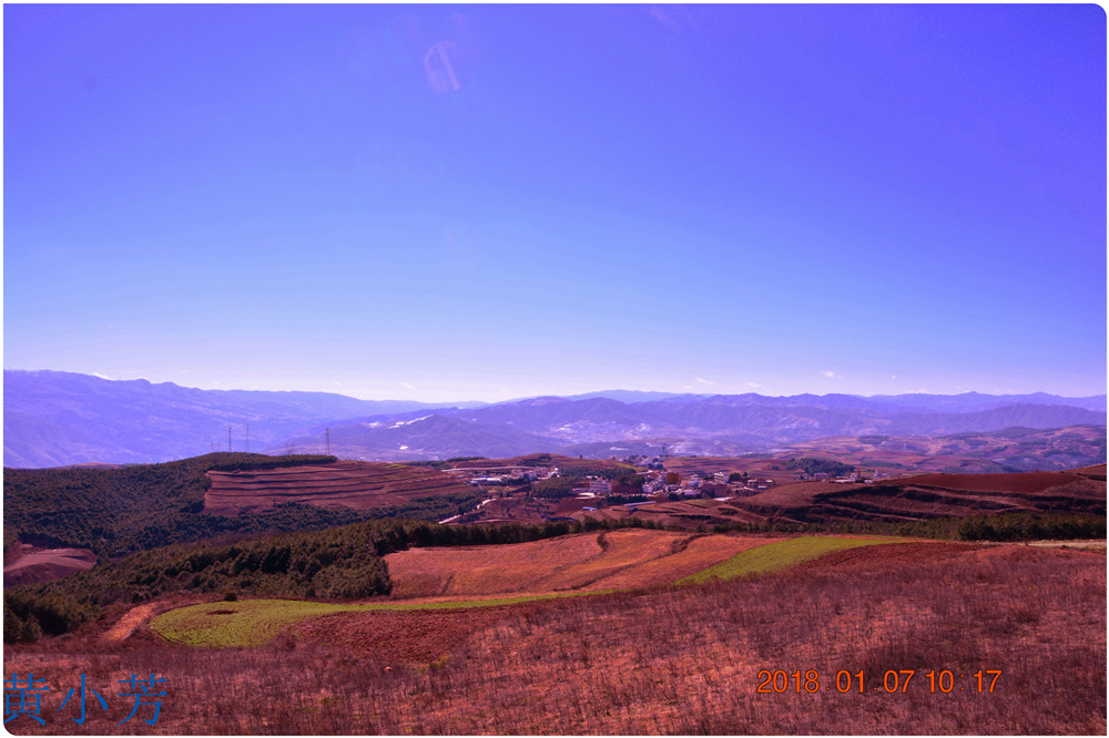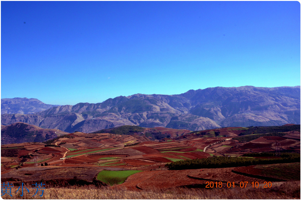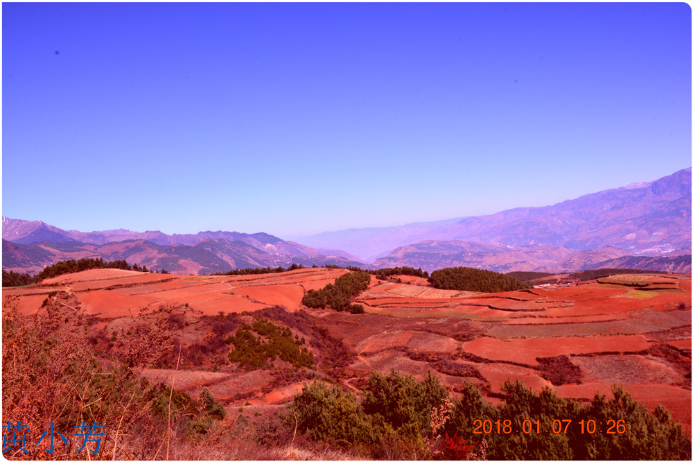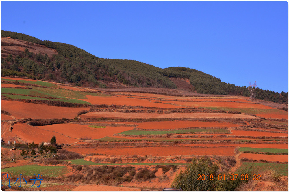 云南地處溫暖濕潤(rùn)的環(huán)境,土壤里的鐵質(zhì)經(jīng)過(guò)氧化慢慢沉積下來(lái),逐漸形成了炫目的色彩。東川紅土地指的是位于昆明市東川區(qū)西南40多公里的紅土地鎮(zhèn)、有一名叫“花石頭”(在109公里程碑處)的地方,這里方圓近百里的區(qū)域是云南紅土高原上最集中、最典型、最具特色的紅土地。每年9至12月,一部分紅土地翻根待種,另一部分紅土地已經(jīng)種上綠綠的青稞或小麥和其他農(nóng)作物,遠(yuǎn)遠(yuǎn)看去,就像上天涂抹的色塊,色彩絢麗斑斕,襯以藍(lán)天、白云和那變幻莫測(cè)的光束,構(gòu)成了紅土地壯觀的景色。