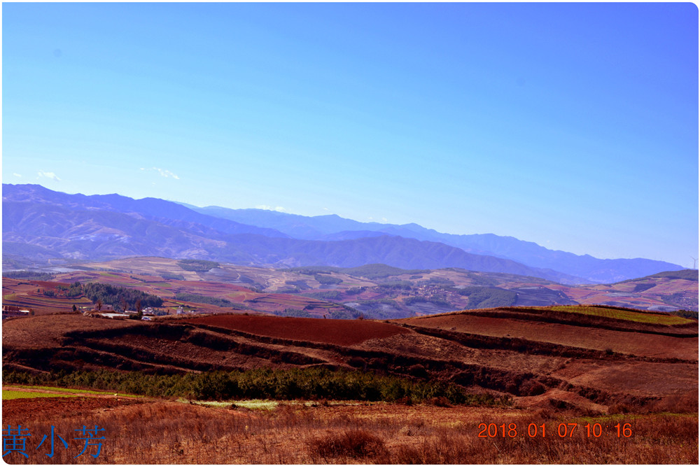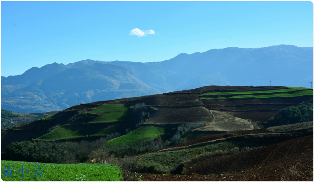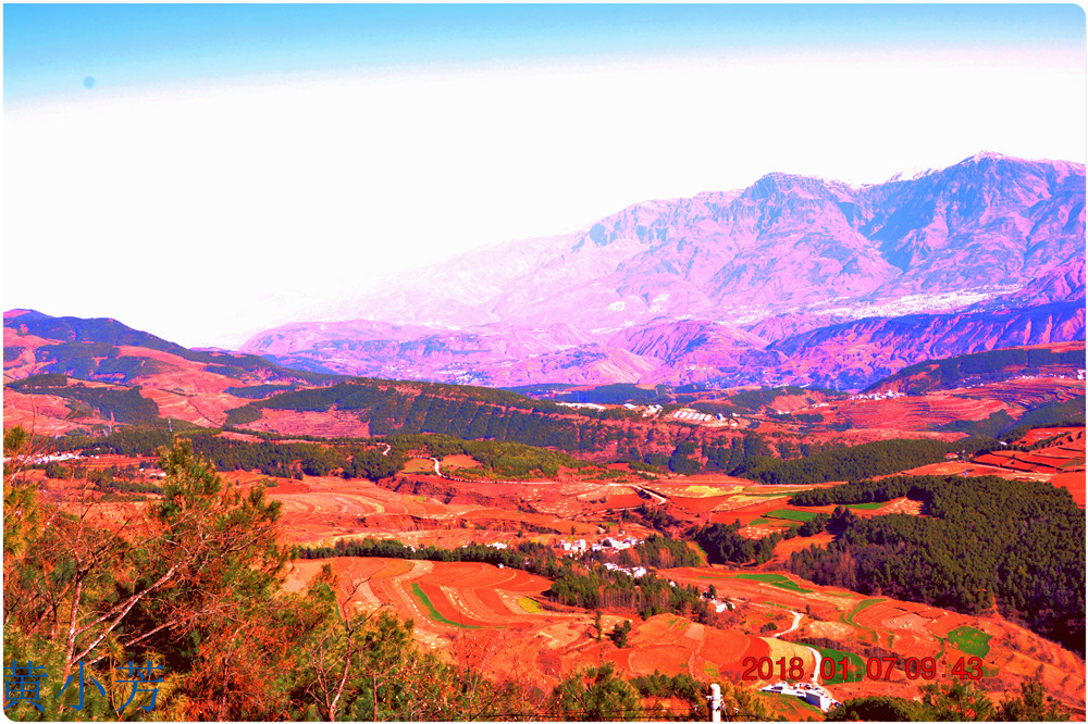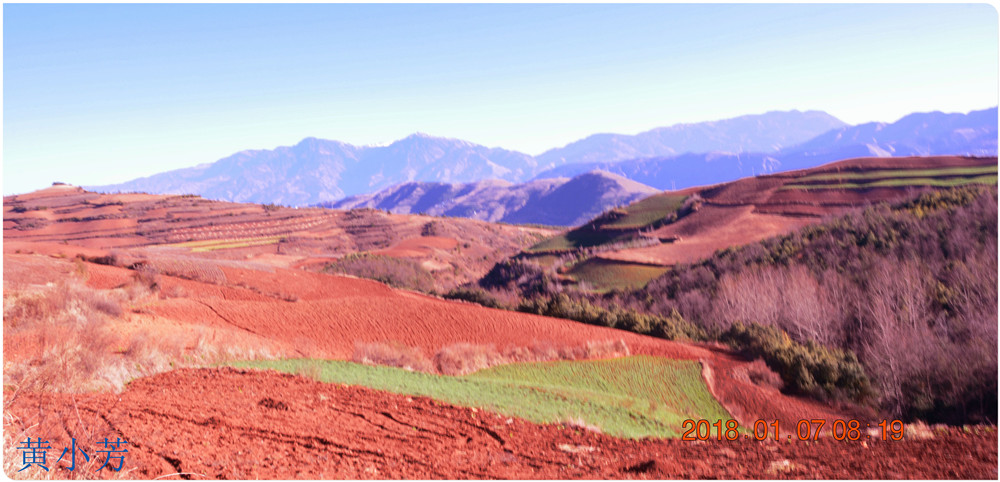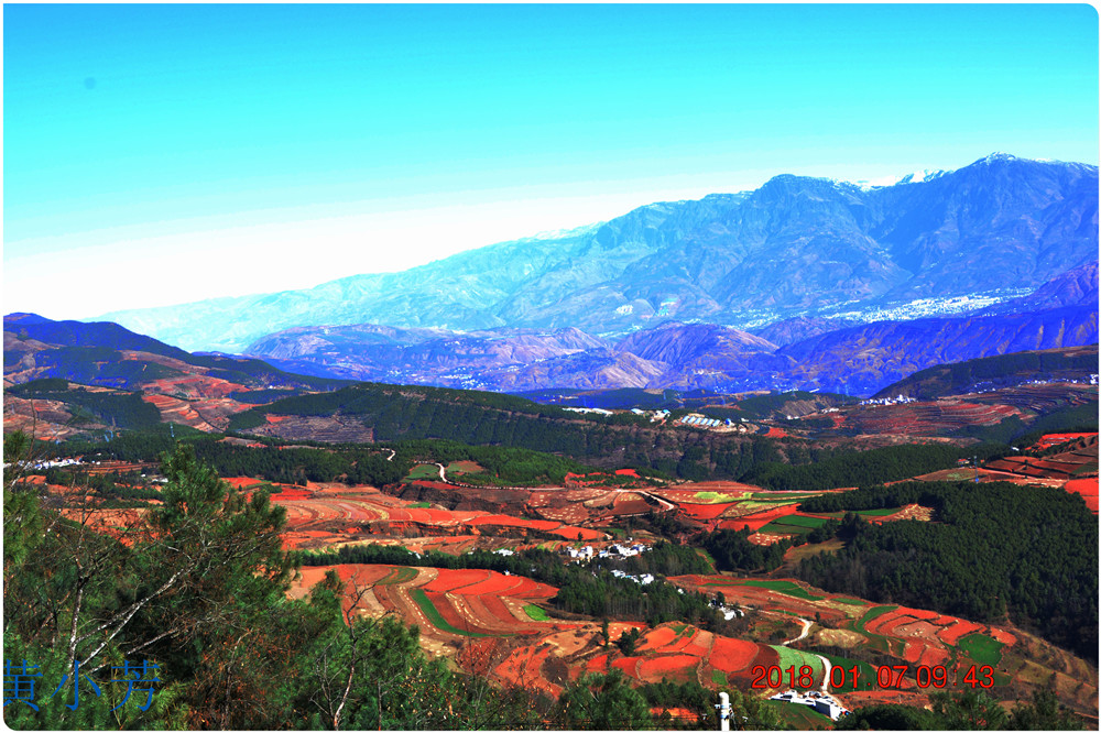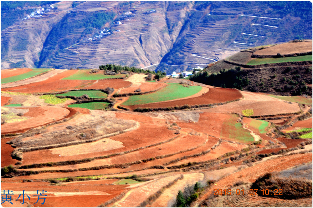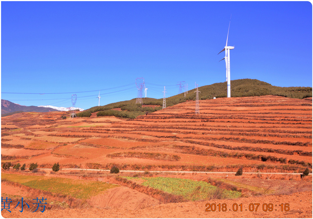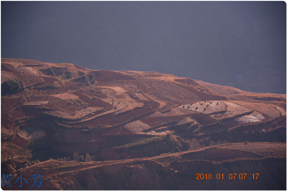 云南地處溫暖濕潤(rùn)的環(huán)境,土壤里的鐵質(zhì)經(jīng)過(guò)氧化慢慢沉積下來(lái),逐漸形成了炫目的色彩。東川紅土地指的是位于昆明市東川區(qū)西南40多公里的紅土地鎮(zhèn)、有一名叫“花石頭”(在109公里程碑處)的地方,這里方圓近百里的區(qū)域是云南紅土高原上最集中、最典型、最具特色的紅土地。每年9至12月,一部分紅土地翻根待種,另一部分紅土地已經(jīng)種上綠綠的青稞或小麥和其他農(nóng)作物,遠(yuǎn)遠(yuǎn)看去,就像上天涂抹的色塊,色彩絢麗斑斕,襯以藍(lán)天、白云和那變幻莫測(cè)的光束,構(gòu)成了紅土地壯觀的景色。