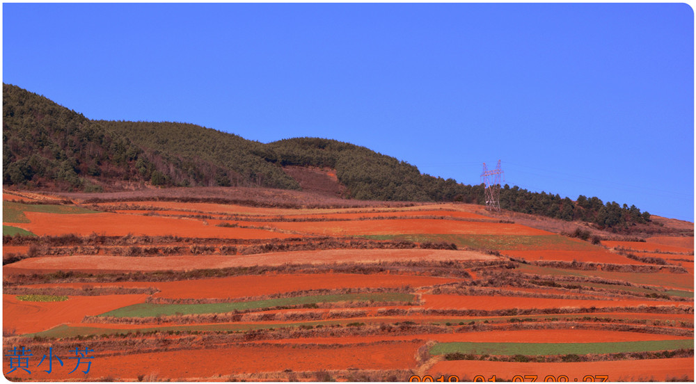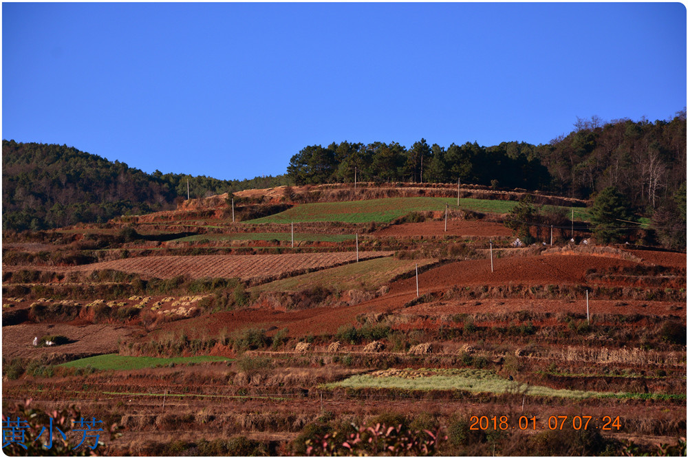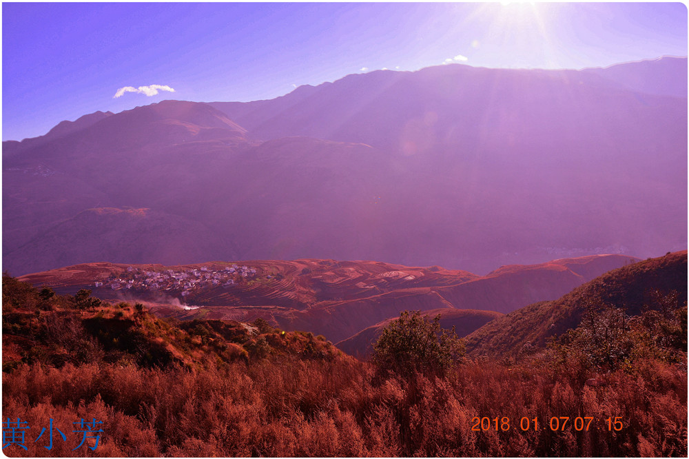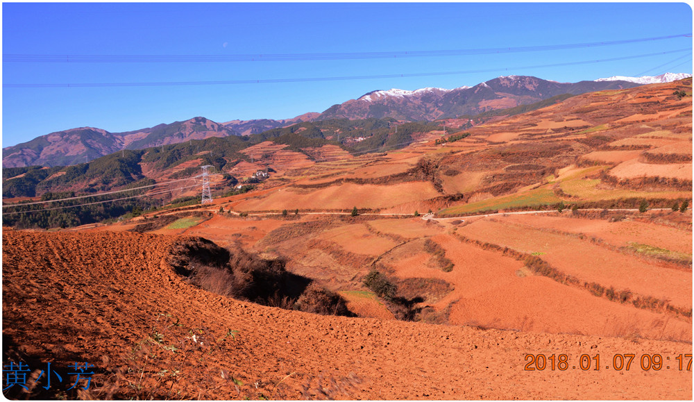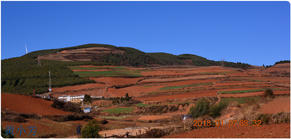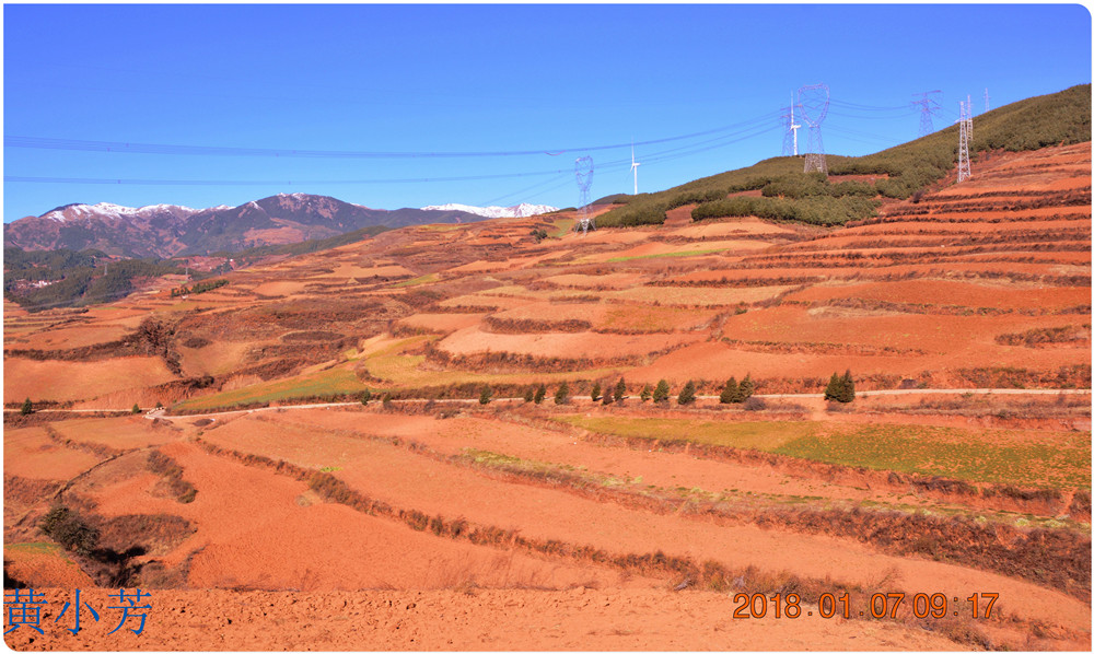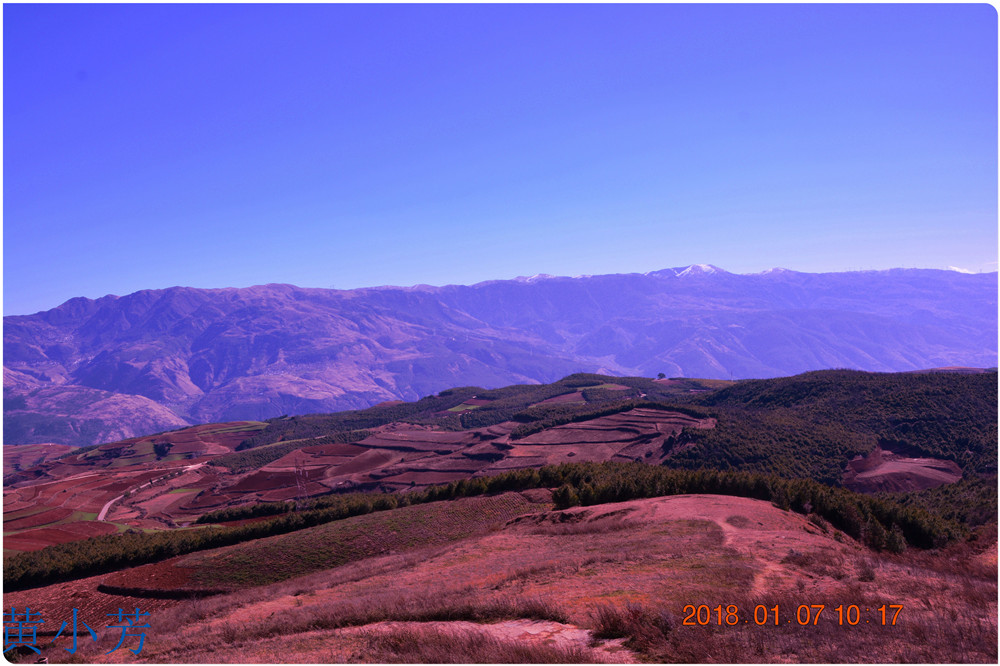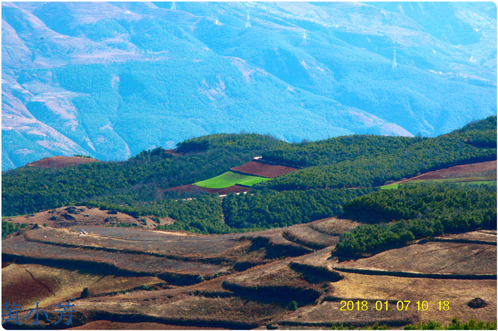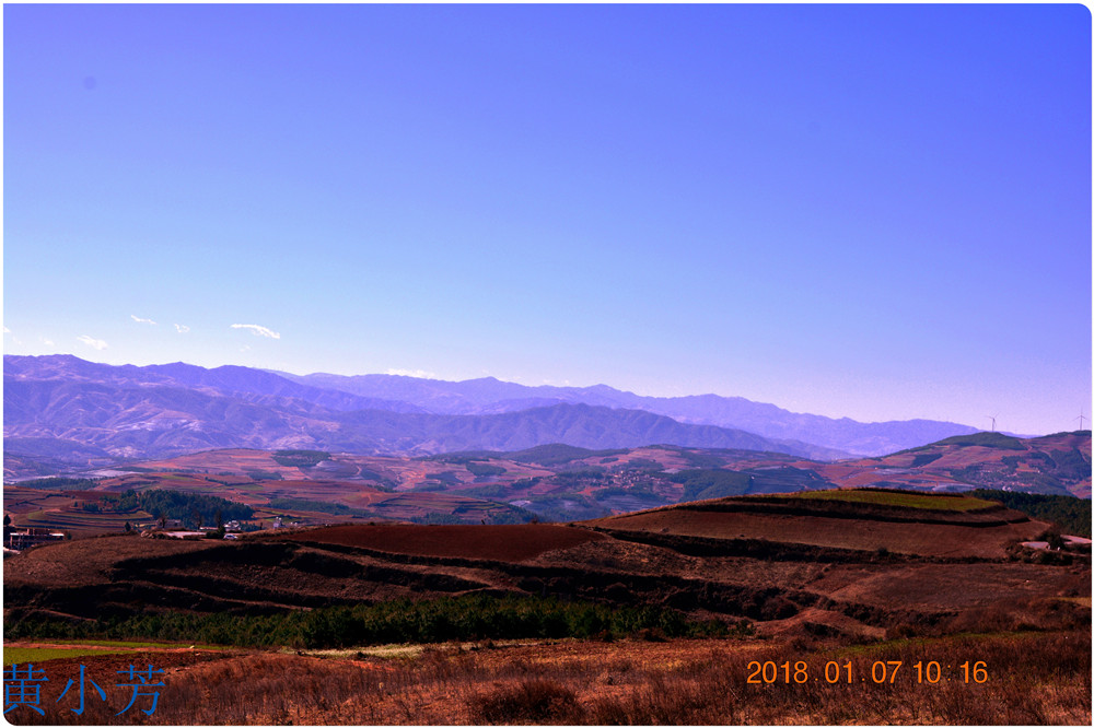 云南地處溫暖濕潤(rùn)的環(huán)境,土壤里的鐵質(zhì)經(jīng)過(guò)氧化慢慢沉積下來(lái),逐漸形成了炫目的色彩。東川紅土地指的是位于昆明市東川區(qū)西南40多公里的紅土地鎮(zhèn)、有一名叫“花石頭”(在109公里程碑處)的地方,這里方圓近百里的區(qū)域是云南紅土高原上最集中、最典型、最具特色的紅土地。每年9至12月,一部分紅土地翻根待種,另一部分紅土地已經(jīng)種上綠綠的青稞或小麥和其他農(nóng)作物,遠(yuǎn)遠(yuǎn)看去,就像上天涂抹的色塊,色彩絢麗斑斕,襯以藍(lán)天、白云和那變幻莫測(cè)的光束,構(gòu)成了紅土地壯觀的景色。