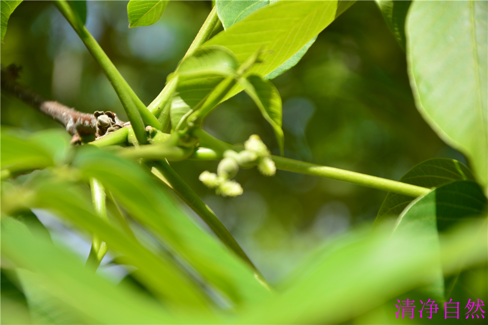 花期已過(guò),依稀能看見(jiàn)微微核桃果實(shí)。