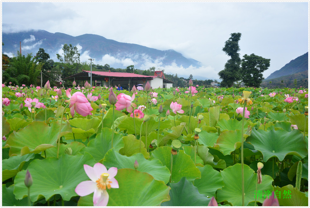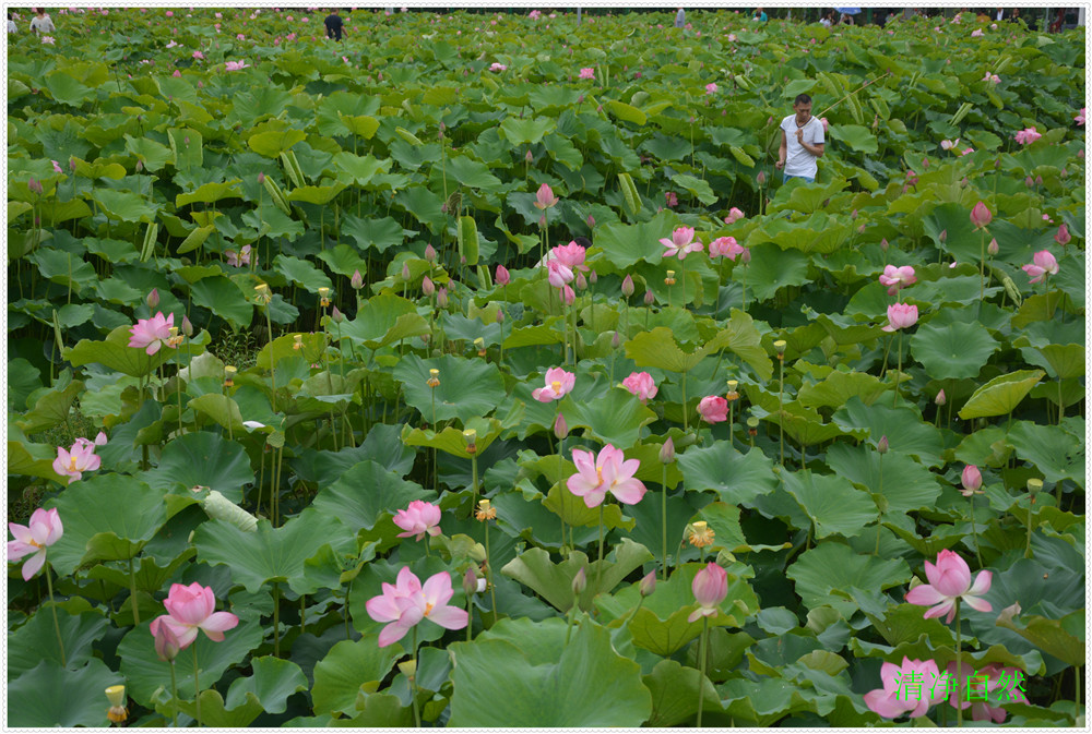 近日每天觀賞荷花的人上千人欣賞留影嬉笑垂釣龍蝦,云霧飄飄飄,使人流年忘返">