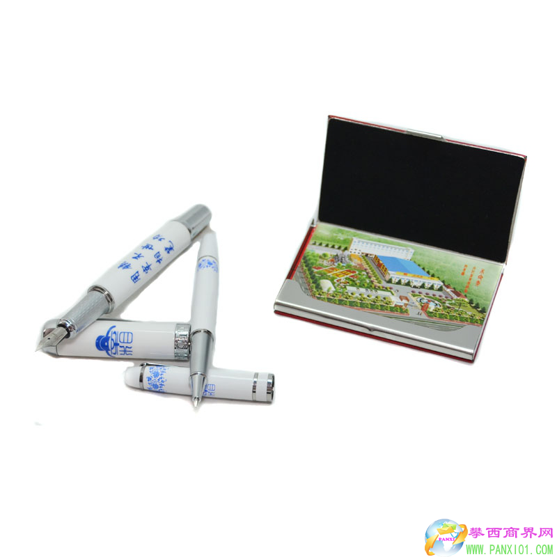 ② 青花瓷筆;里面有套裝的青花瓷筆,還有一個名片夾??梢宰鳛樯虅?wù)會