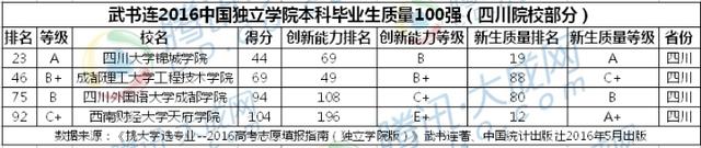 • 2016中國(guó)獨(dú)立學(xué)院排行榜公布 四川片區(qū)誰(shuí)最強(qiáng)